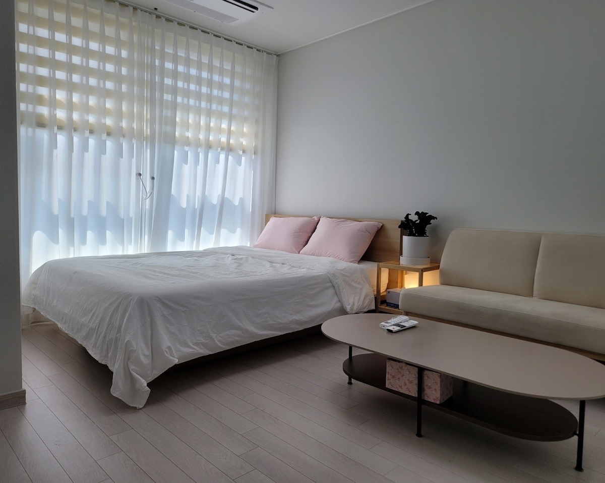 유스퀘어 버스터미널에서 택시 5분, 조용하고 아늑한 분위기의 1인 여성 게스트 전용숙소(Only for Woman) 운암동에 위치한 따뜻한 공간입니다. 우선 숙소 근처에 문화예술회관과 버스정류장이 있어 편의성이 큰 장점입니다. 게스트가 이용하시는 동안 편안히 쉴 수 있도록 포근한 헝가리 구스다운 침구와 매트리스 등 최적의 휴식을 취할 수 있도록 공간을 꾸몄습니다. 도심에 위치해 있지만 이용하시는 동안 조용하고 편안하게 머무를 있도록 만들어진 숙소입니다. 또한 게스트 분의 안전을 위하여 현관 앞 cctv가 설치되어 있어 안전과 보안에 신경을 쓰고 있습니다. 조용하고 깨끗하게 잘 정돈된 곳에서 잠시 쉬어가려는 분께 저희 숙소에서 힐링하시길 추천드립니다.☺️