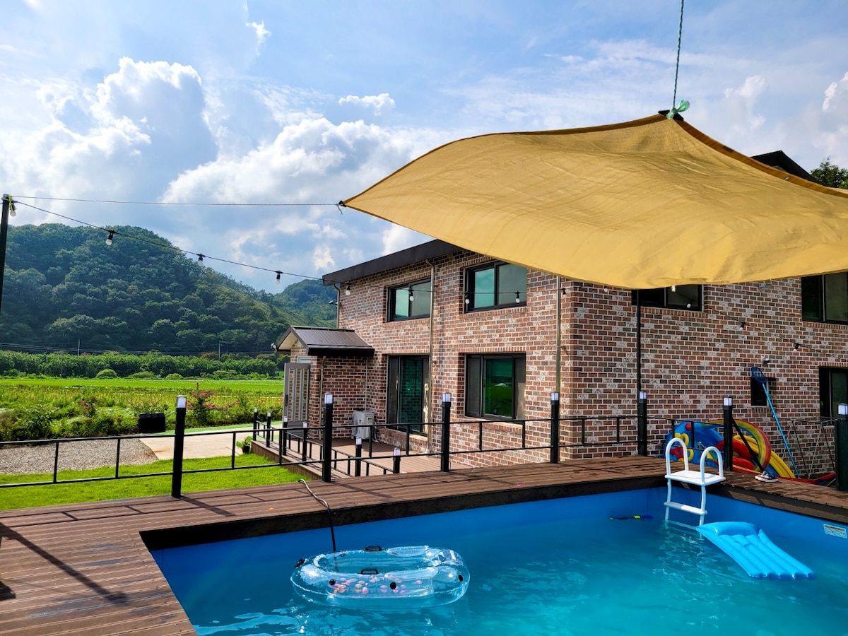 대가족.단체모임 머물기에 깨끗하고 넓은 숙소입니다. 2층복층으로 되어 있어 아이들과 어른들의 분리 공간에서 여유롭고 즐거운 시간을 보낼수있습니다.2층침대 10인 이상의 바베큐장이 준비되어 있고 우리들만의 프라이빗한 공간에서 수영과 파티를 즐길수있습니다. 한공간에서 가족과함께 여행하기에 좋은 숙소입니다. 🌸6인기준🌸 추가인원 1인당 2만원 바베큐 이용시 3만원 별도 애완동물 입시불가 실내에서 고기 및 생선구이 금지합니다. 실내 흡연금지 40평형 2층 신축펜션 [침대방 2개/온돌방1개/화장실3개/거실2개 주방/테라스/수영장/파고라바베큐시설 및 전기그릴 설치 대형테이블(12인)] 스마트TV(Ott,유튜브 시청가능 1,2층 각각 구비) 냉장고/쿠쿠압력밥솥/전자레인지/인덕션 마샬블루트스/6인쇼파,식탁/12인 이상 가능한식기및조리도구/시스템 에어컨/드라이기2개/샴푸,컨디셔너,바디워시/화장지/비데2대설치/전기포트 인원수에 맞게 토퍼및 침구류 타올 무료제공합니다. 수영장 온수안됩니다