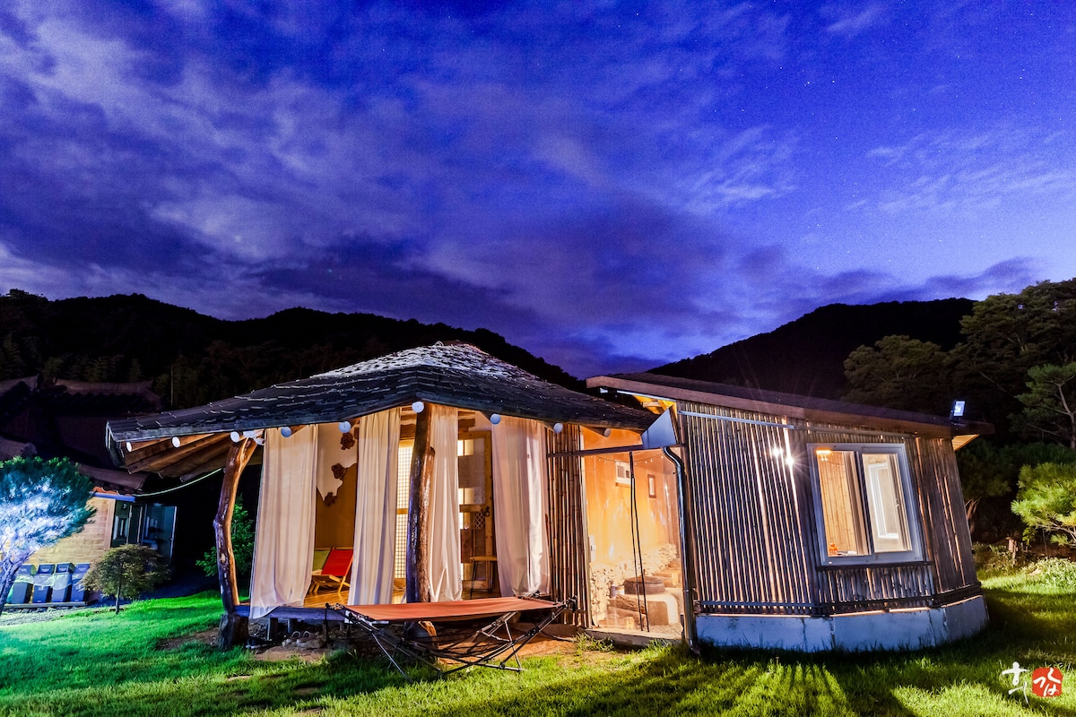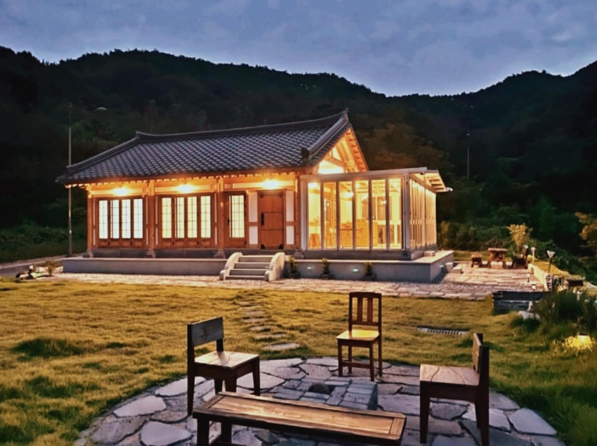 内藏山韩屋/免费按摩浴缸。独立房源 泳池别墅。内藏山。井邑。森林。湖泊。露台