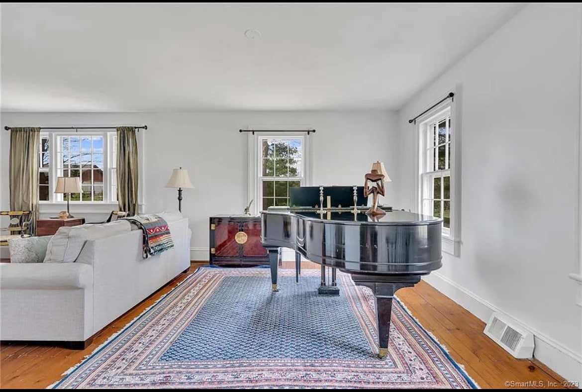 Serene, elegantly appointed 19th century compound, fully modernized and set on the edge of a 50 acre land preserve next to boat friendly Bantam Lake. Located in the rolling hills of Litchfield County this expansive home has four buildings and every amenity: pool, hot tub, heated gym, cedar sauna, central AC, 2 chef’s kitchens, game barn, primary suite with wb fireplace and soaking tub, a pool house guest suite with steam shower, & treehouse w/ slides & a swing set built on a 300yr old oak tree.