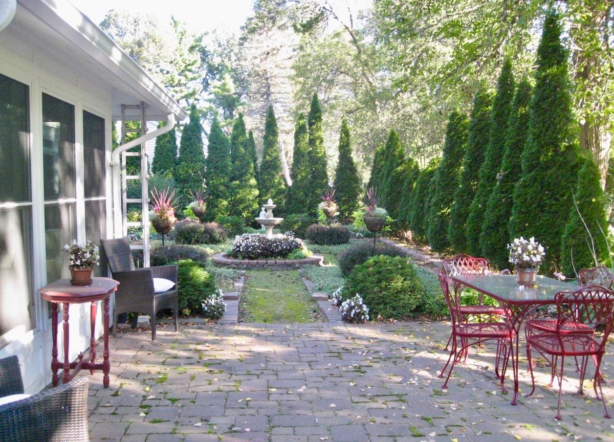COVID CLEANED Private Garden Apartment. Feel at home in your private lower level living space. Our home is surrounded by beautiful landscaped gardens and patios. We are located near the lake, on the lake bike loop, in the heart of Madison. Relax outside, enjoy dinner on the patio or have a bonfire. Venture out on a bike ride to the farmer's market on the Capital Square, or visit Monona Terrace, State Street, Olbrich Gardens or the Alliant Energy Center; just a short distance away.