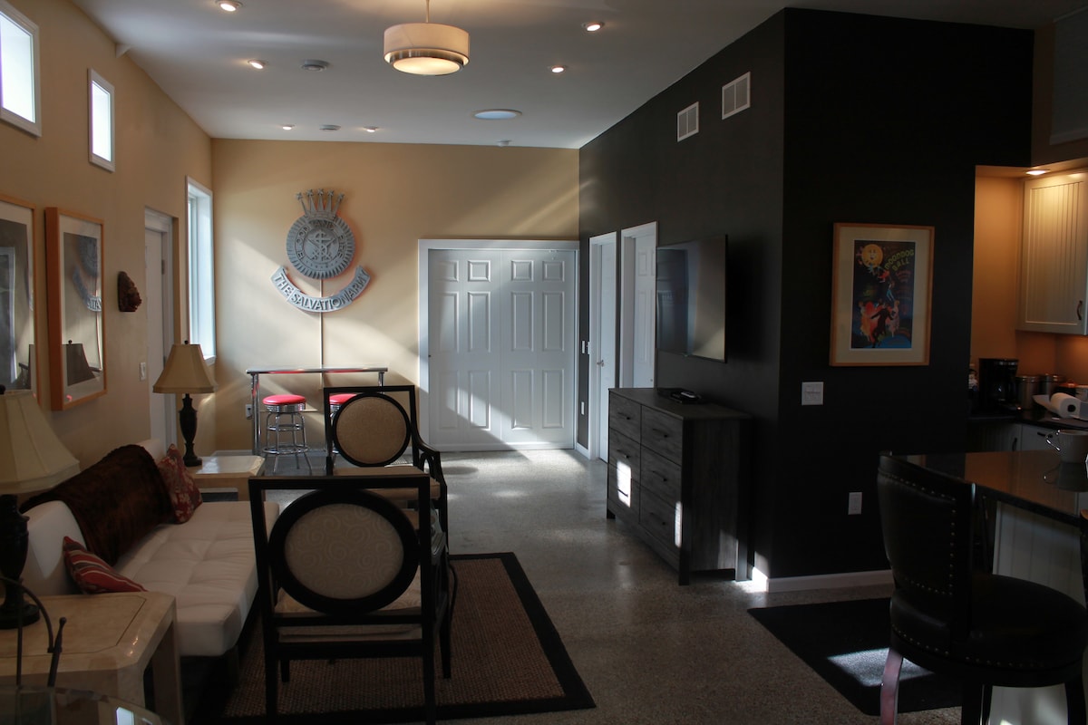 1930's grocery store converted into a unique one bedroom residence. Ideally located on the near east side, close to airport and downtown. Walking distance to restaurants, nightlife, music venues, shops, parks, Lake Monona, and grocery market. Bike path is right outside the door. Off-street parking. Cable TV with large screen in living room and small screen in bedroom. Owner occupies studio space with separate entrance. (Permit: ZTRHP1-2020-00007)