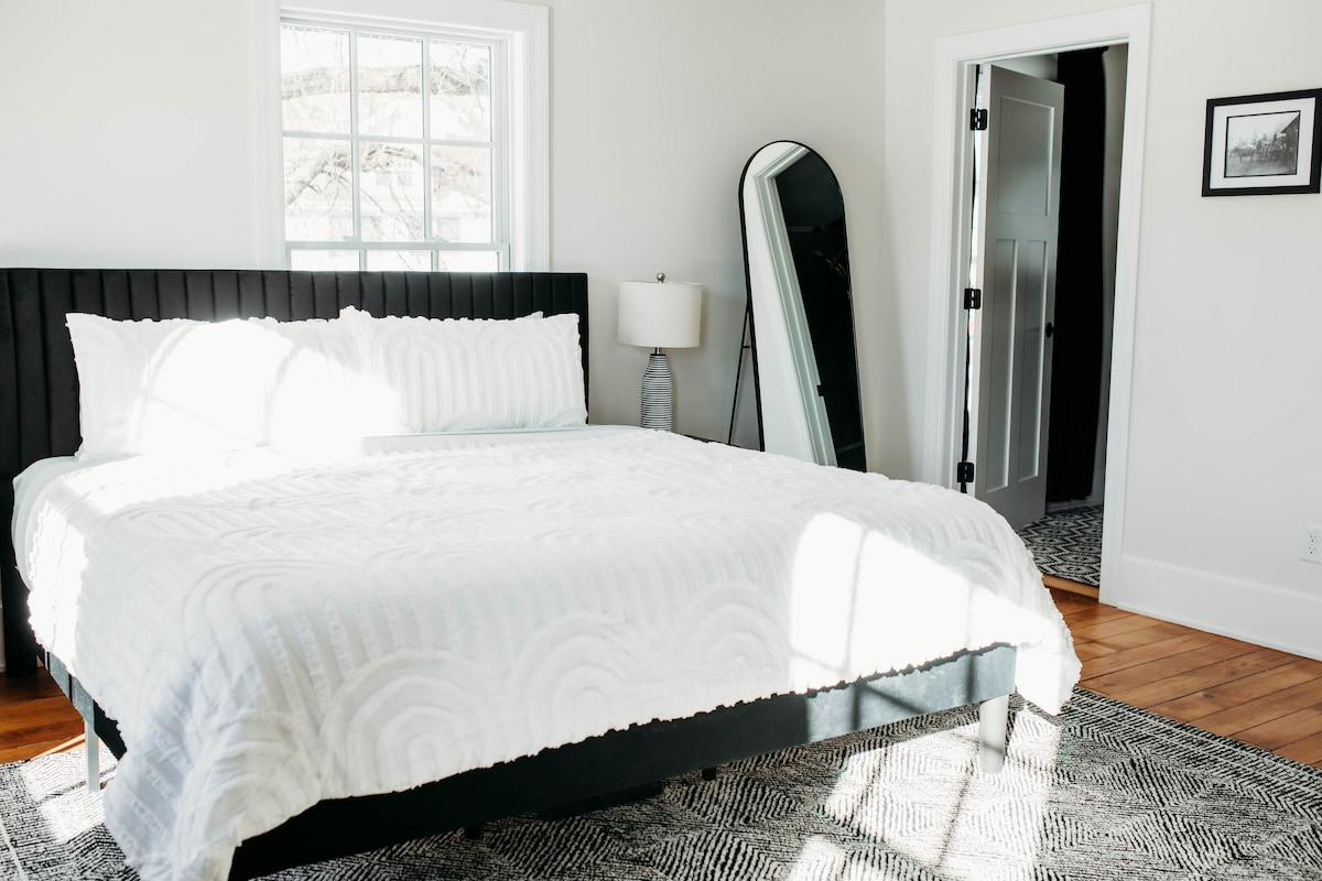 The Elvehjem name traces back to early Norwegian settlers in Wisconsin. It is a reflection of the Scandinavian heritage that shaped much of the county's culture. Meaning "river home" in Norwegian, the room is quiet, grounded and refined. The King Suite is Nordic simplicity: Premium king bed Warm linens Comfortable seating Large custom bathroom The Elvehjem Suite is ideal for solo travelers, couples, and the extended stay guests seeking calm and clarity.