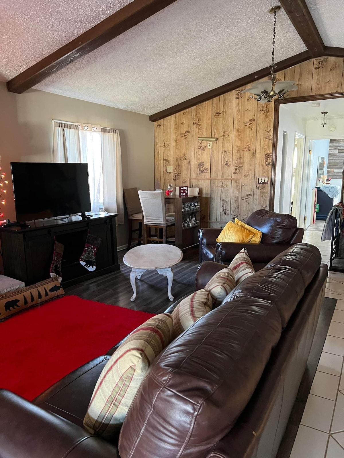 You don't have to be born in a barn to vacation in one. Trade in the city for millions of stars in the night sky! As you enter thru the French doors you will be greeted by an open concept room decorated with a barn/industrial motif. Knotty pine car-siding and galvanized steel, wood floors along with a reclining leather couch and love seat fill the room A full kitchen with granite counter tops await you. There is plenty of natural lighting for the evenings.