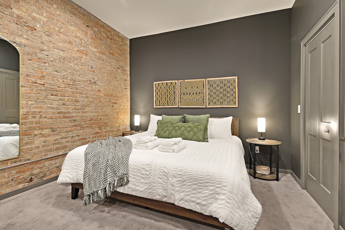 ✤City Chic Haven✤ is a luxury studio in downtown Kankakee, steps from the train station, taverns, and walkable attractions. Enjoy a cozy king bed, fast Wi-Fi, free coffee/tea bar, stocked kitchen, & 55” smart TV for a relaxing or work friendly stay. ✶ Across the street from the Kankakee train station ✶ Walkable to local cafes, axe throwing & taverns ✶ 0.3 Miles to St. Mary's Hospital ✶ 1.3 Miles to Riverside Medical Center ✶ 2.9 Miles to Olivet Nazarene University ✶ 55 Miles to Midway Airport