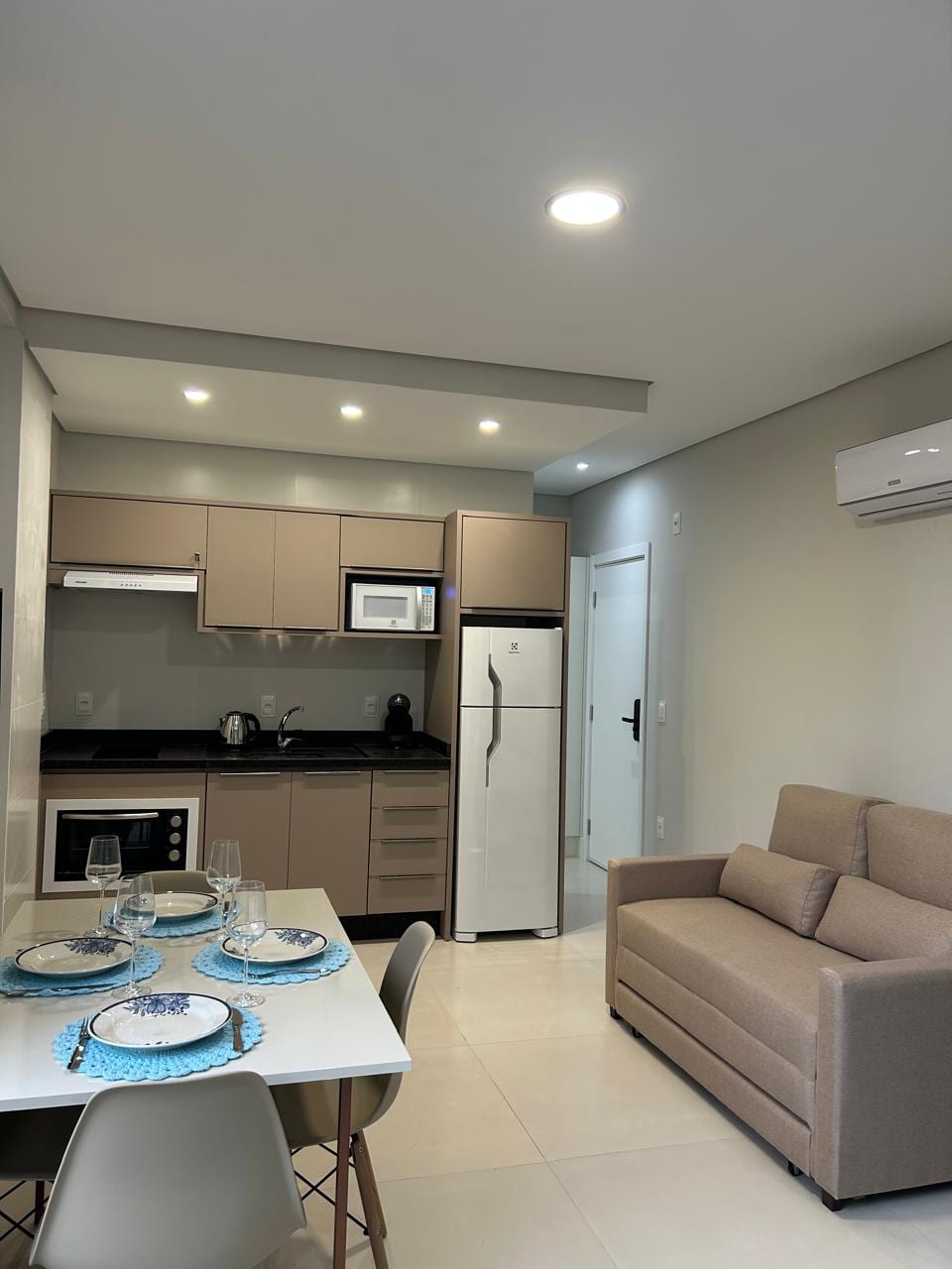High Standard Apartment, located in one of the most famous neighborhoods in Brazil. Jurerê - Florianopolis. It has an area of ​​140m2 and has two super modern suites that are very well equipped for your comfort. Our space contains: * Kitchen: Duplex refrigerator, dishwasher, electric oven, microwave, Nespresso coffee maker, blender, sandwich maker, cooktop, complete crockery and pan set, * Living Room: - Samsung TV ''75'', Electric sofas and armchairs.