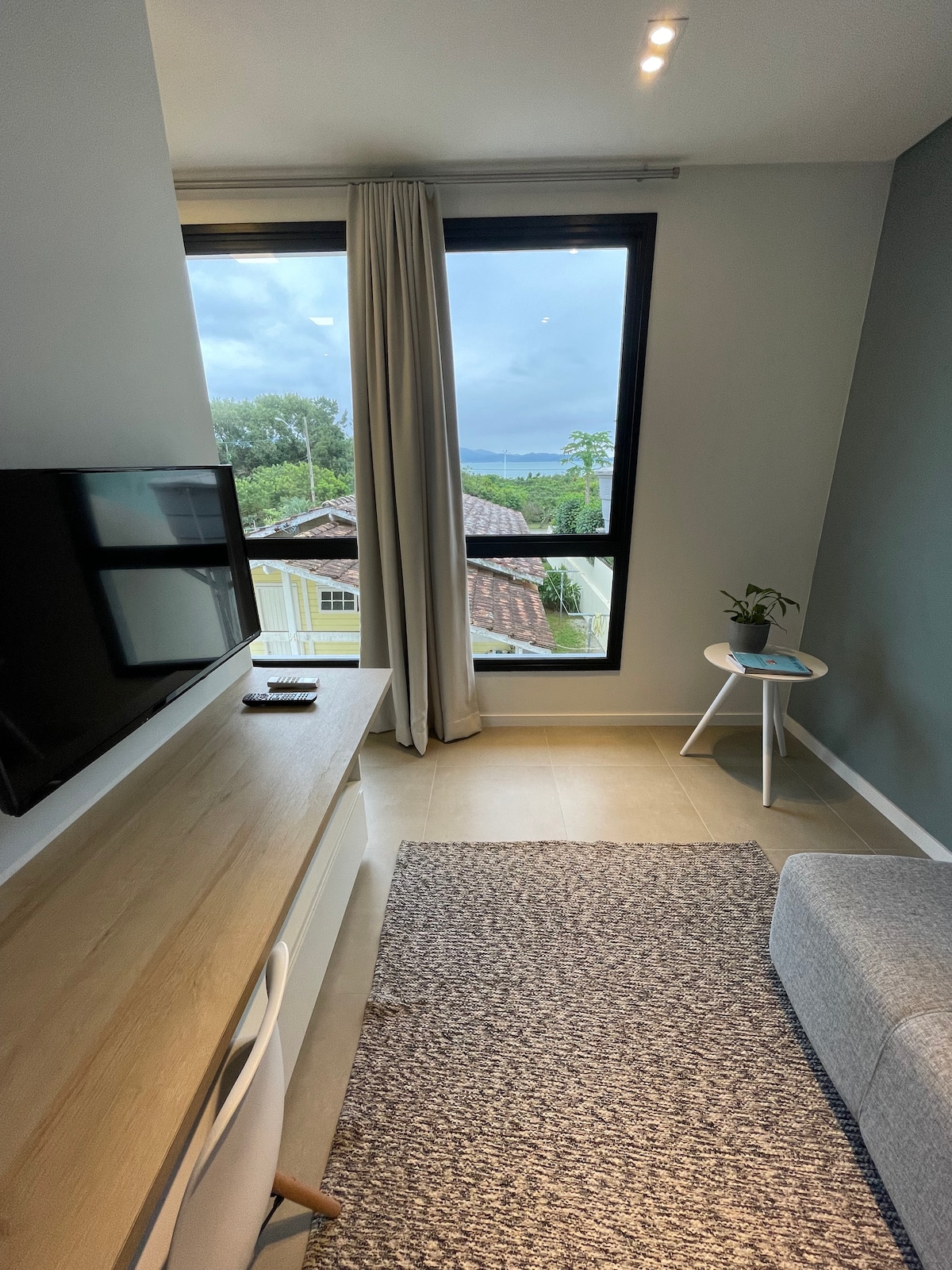 Em Jurerê - a praia mais famosa de Florianópolis, mar tranquilo, belas paisagens e restaurantes. Você vai ter ter a privacidade de um apartamento moderno com a comodidade de serviços de um hotel 5 estrelas, incluindo a limpeza diária. Perfeito para casais, aventuras individuais, viajantes a negócios e famílias (com até duas crianças, sendo uma acomodada em berço). Apenas os serviços opcionais do hotel: restaurante, café da manhã ou estacionamento c/ manobrista, são pagos diretamente ao hotel.