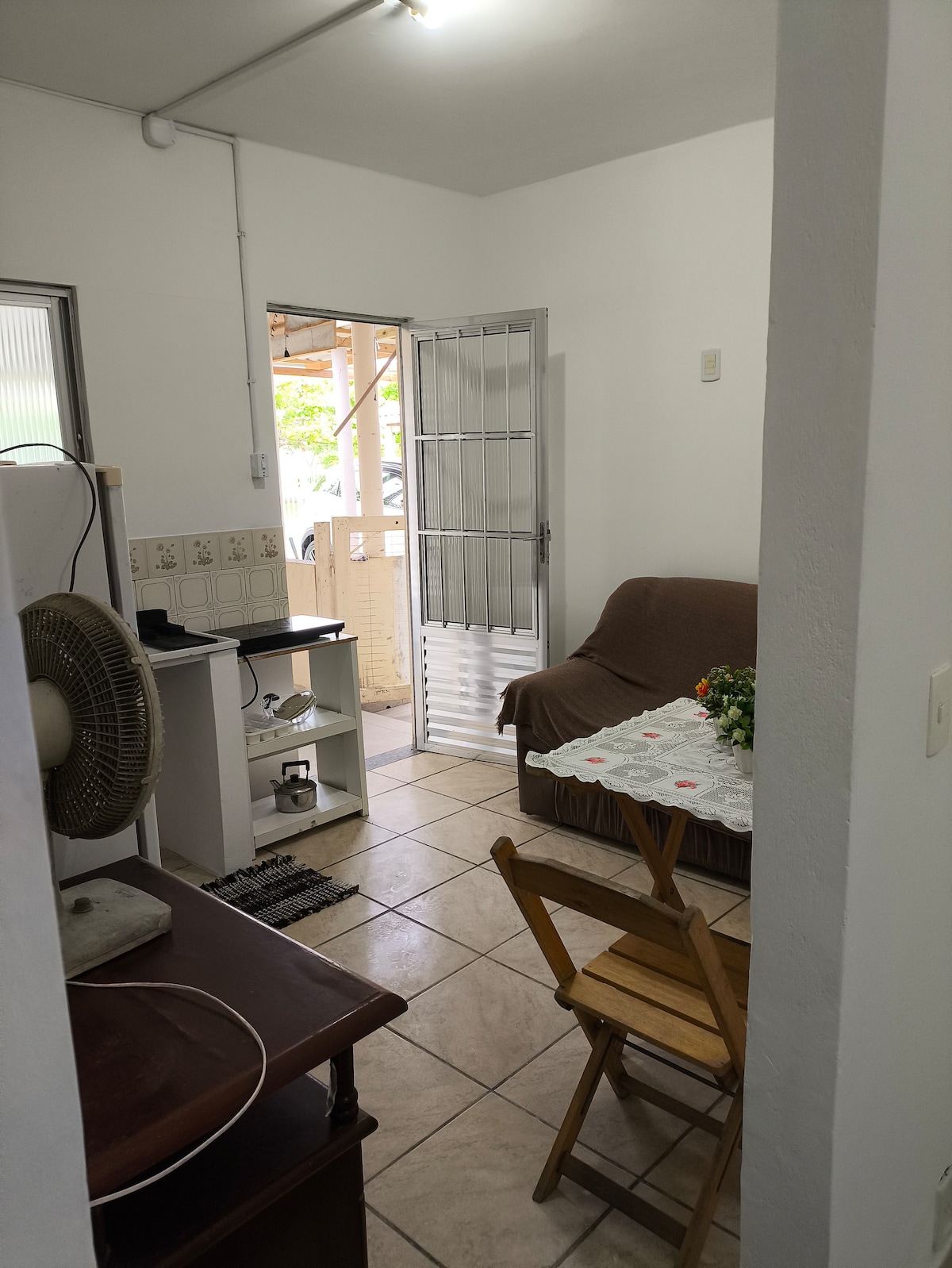Studio tranquilo, bem ventilado e confortável, ideal para trabalhar home office, ar-condicionado QUENTE /frio, passear e estar na região central de Floripa, no caminho para as melhores praias. Mesa e cadeira de escritório, cozinha, banheiro. Há outros espaços compartilhados, para práticas de Yoga (espaço Casa Aflorar), privilegiada vista para a Beiramar e região, cercada por vegetação nativa, jardins. Internet fibra, airfryer, cortinas black-out.Academias de musculação próximas,ciclovias.