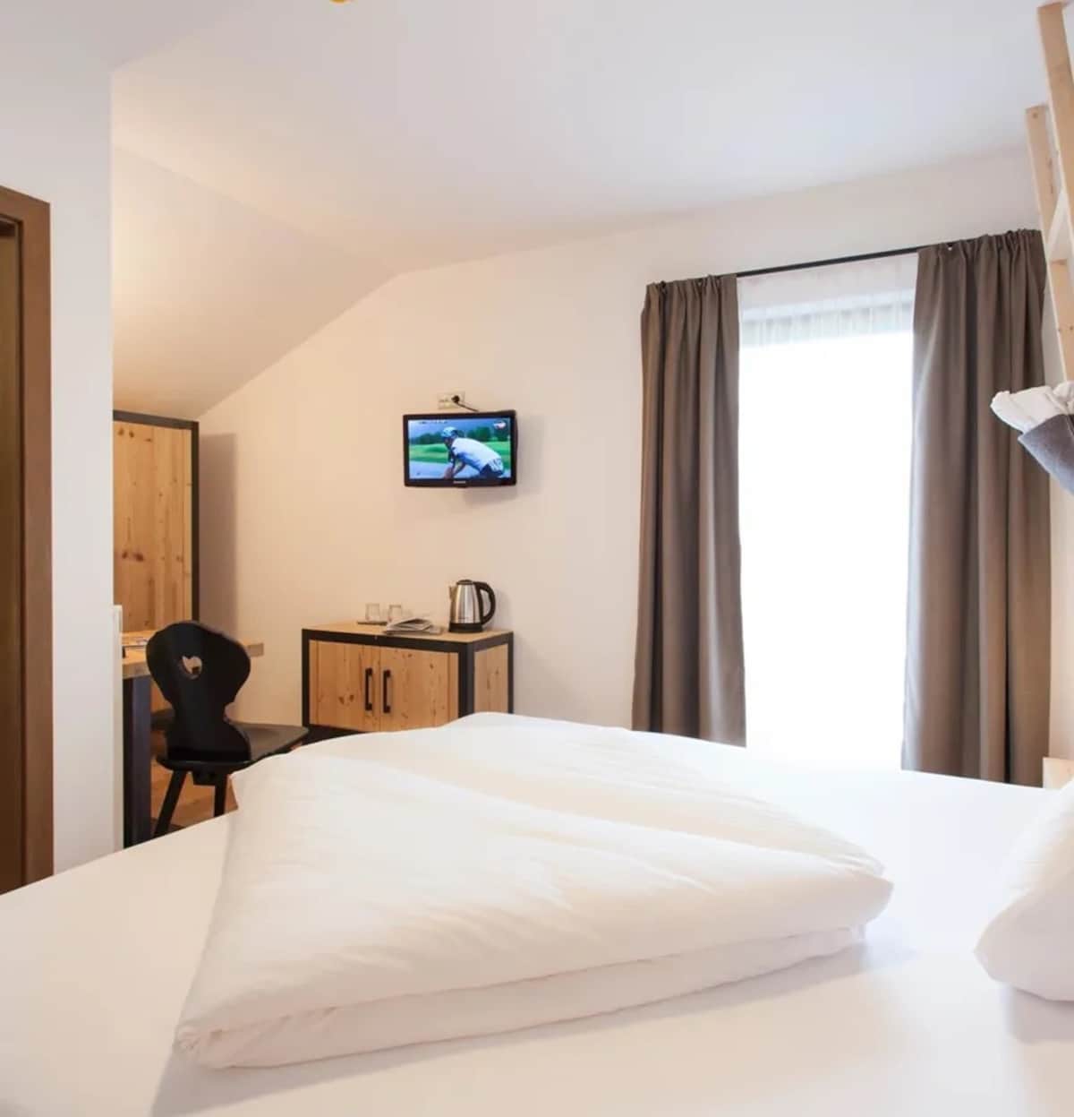 "Mittagblick" is 75 m² and suitable for 1-5 people. It offers high, bright rooms, cozy corners and a covered southwest-facing balcony with unobstructed mountain views. One room with an open foot double bed and space for a baby crib, one room with 2 single beds, separate fully equipped kitchen, living area with corner bench, sofa bed and TV. You can enjoy your barbecue in the large garden. Playground equipment, parking spaces, W-Lan and, if required, baby equipment are available free of charge.