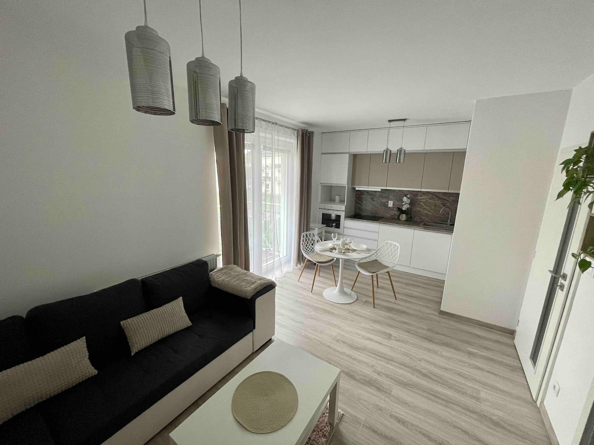 Brand new fully equipped apartment with balcony for quiet rest. See offered amenities. Close to apartment you can find grocery, pharmacy and many other stores.