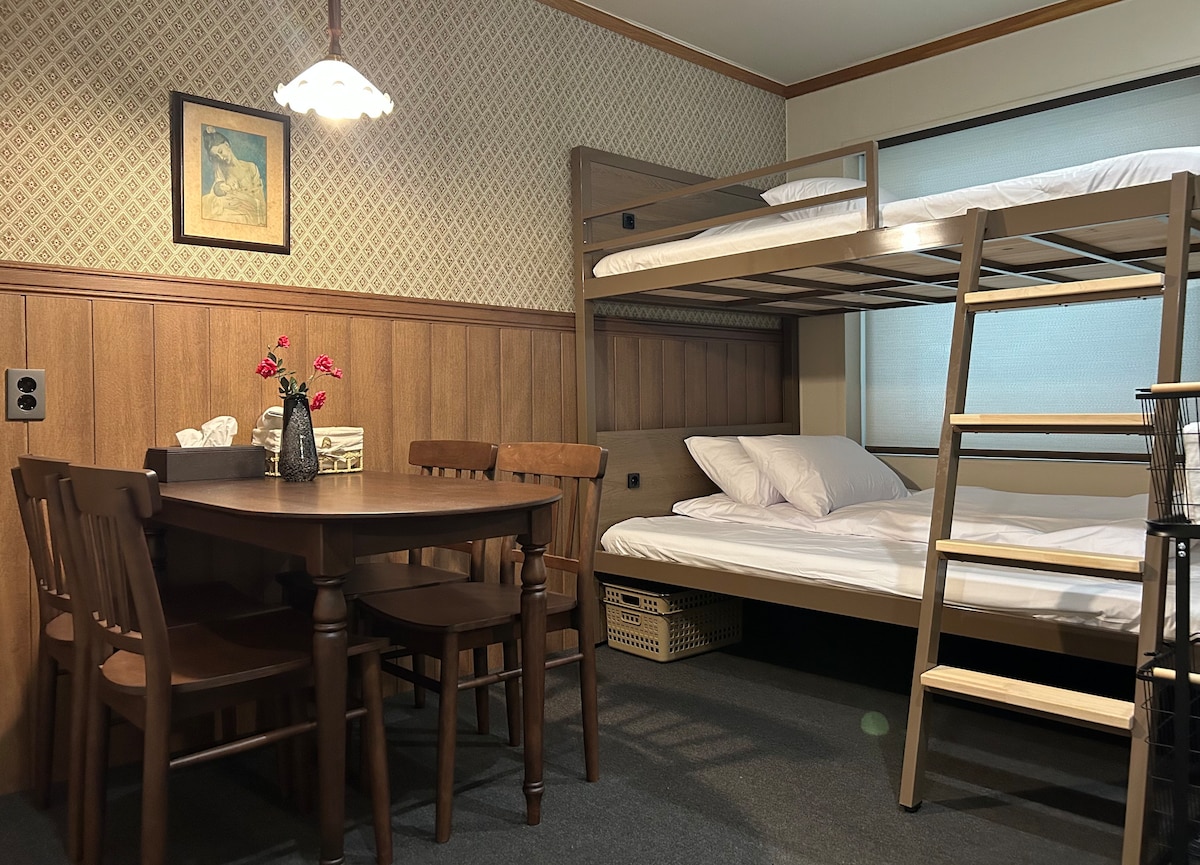 新房源P4/忠武路站3分钟/明洞/南山景观/2卧室/独立卫生间/复古情调住宿/长期住宿/高级4人房