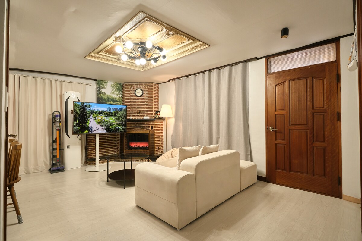 홍대입구역 도심에 위치한 정원과 바베큐 테라스가 있는 프리미엄 디자이너 하우스 CASA Living, MARU, SBS Morning Wide에 소개된 이 특별한 집은 이탈리아 디자인 스튜디오 Elastico의 디자이너 시모네 카레나 & 마르코 부르노가 한국 전통 한옥의 구조와 문화를 현대적으로 재해석하여 설계한 공간 담쟁이덩굴이 감싼 정원, 서울 한가운데서도 사계절의 자연을 느낄 수 있는 도심 속 힐링 공간을 경험 가능 벽난로가 있는 고급스러운 거실에서는 빔프로젝터로 영화를 감상할 수 있으며 침실에는 5성급 호텔 수준의 프리미엄 구스다운 침구(95% 이상) 완비 홍대의 감각적인 카페, 레스토랑, 갤러리와 가까우면서도 번잡함에서 살짝 벗어난 조용한 주택가에 위치한 프리미엄 숙소 12년 연속 슈퍼호스트가 운영하는 숙소로 청결, 관리, 서비스에 있어 최고의 만족도를 유지 4박 이상 예약 고객 무료 공항 픽업 서비스 제공 5박 이상 예약 고객 서울 프라이빗 투어 경험 무료 제공