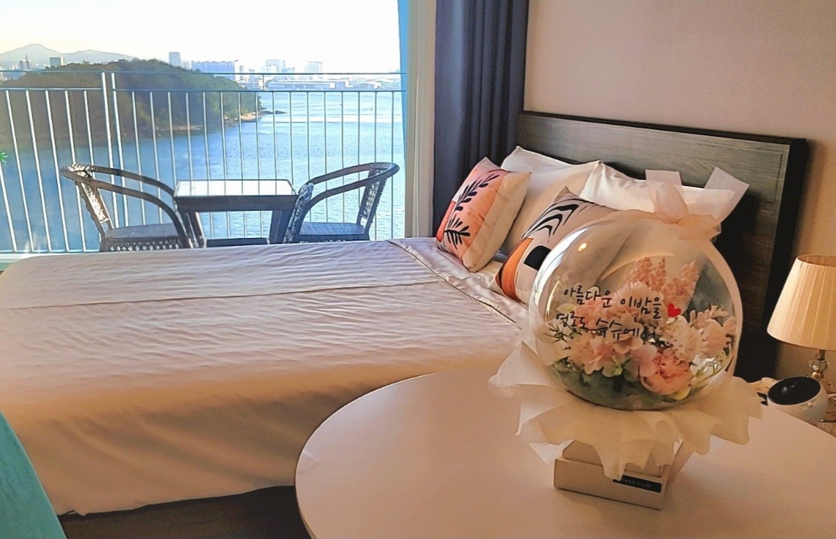 재방문률이 높은 영종도 Airbnb 일상을 잠시 내려놓고 매일 눈 앞에 펼쳐져 있는 바닷가의 풍경을 보며 나만의 혹은 누군가와의 즐거운 시간을 보내세요. 따뜻한 공간에서 베란다 바깥으로 내려다 보이는 바다와 예쁜 건물들. 따뜻한 오후의 햇살이 드리운 풍경도 늦은 밤 조명이 들어오는 바닷가의 모습도 방 안에서 편안하게 즐겨보세요. ▶체크인 : 오후 4시 ▶체크아웃 오전 11시 얼리 체크인, 레이트 체크아웃 : 시간 당 만원 추가 (레이트체크아웃은 1시까지만 가능합니다.) ▶이용시설 ▶무료주차 B1 ~ B3 (전기차 충전자리 있음) 객실 내 전체 시설 이용가능 WiFi TV : Youtube, Netflix, Disney+, Watcha, TVing, Wavve 시청가능 침실, 화장실, 에어컨 커튼, 퀸베드, 호텔식 침구류 무드등 등으로 사진 찍기 좋아요. 2~3인 조리도구, 식기 와인잔 하이볼잔 구급상자, 헤어드라이어, 고데기 구비중입니다.