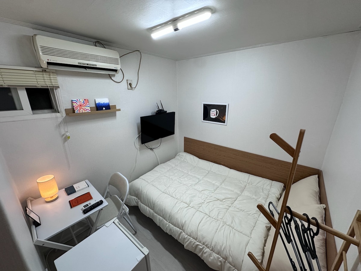 - 房间7坪,床135*200,书桌1200*1800,可以保管行李 - 具备可办公、可做饭的简单餐具,智能电视 50 英寸 - Wifi, 大衣柜, 大冰箱, 洗衣机, 晾衣架, 吹风机, 毛巾, 纸巾, 水 收费停车 洗发水、沐浴露、护发素、香皂 - 从仁川机场到宿舍正门乘坐机场巴士时56分钟(包括6分钟步行) - 从宿舍可以走着去的地方 大创(6分钟),OLIVE YOUNG(3分钟),时代广场(3分钟),汗蒸房(6分钟) -从宿舍坐地铁去的地方 (附近有 1 号线永登浦站、2 号线文来站、5 号线永登浦市场站) 东大门 DDP(41 分钟),汝矣岛汉江公园(21 分钟),清溪川(41 分钟),景福宫(39 分钟) 弘益大学入口站(24分钟),北村韩屋村(41分钟),明洞(36分钟),圣水洞(47分钟) 文来洞(12分钟),永登浦站是KTX停车站,去釜山等地方很方便。 清晨感受着从窗户照进来的温暖阳光 晚上坐在房间的窗边享受时代广场的夜景