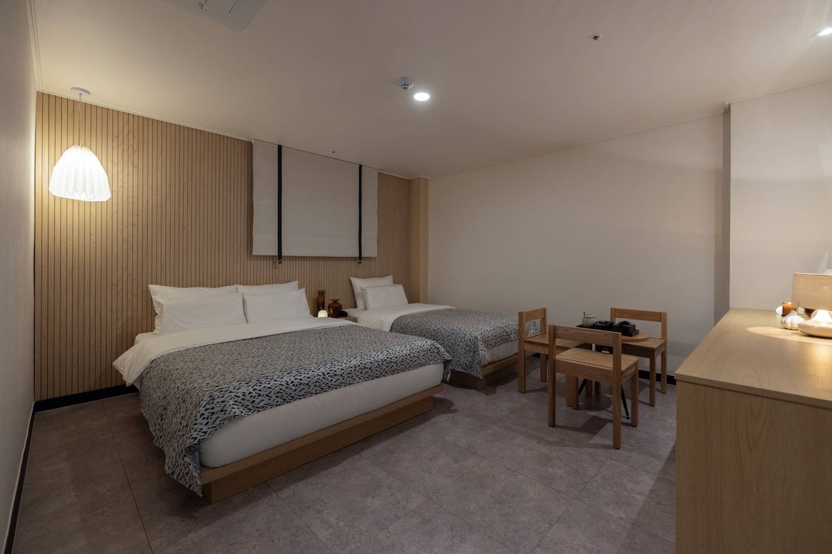 ํธ๋ฐฐ๋ 1, ์ํผ์ฑ๊ธ๋ฐฐ๋ 1,์์ 3๊ฐ, ์๊ธฐ๋ฅ 3์ธํธ [Couple /Triple] Cozy 2-beds and 3/4 bath (1 Queen bed, 1 Super single bed) Connect to Subway stn. *Government Authorized* - Super Safe Guest house โฃ ๋ฌด๋ฃ(Free): WiFi, ์ ํ๋ธ,๊ฑด๋ฌผ๋ด ์ฃผ์ฐจ(์ฐจ๋๋ฑ๋กํ์) โฃ ์ฐ์ปดํฐ ์ ๊ณต(๋ค์คํ๋ ์ ์บก์์ปคํผ๋จธ์ ),์์์ ๊ณต, ์๋ง์ปคํผ,์์๋ ์ ค,์ผํธ,๋ฆฐ์ค,๋ฐ๋์์,์ผํ์ฉ ์์ธ๋ฏธ, ๋ฌด๋๋ฑ โฃ ๋์ฅ๊ณ ,๋๋กฌ,์ปคํผํฌํธ,ํค์ด๋๋ผ์ด์ด,์ฒญ์๋๊ตฌ(์์ฒญ์ ์ ๊ณต) โฃ๋ฌ๋น์ถ์ ๊ณต์์ญ : ๋๋ณด5๋ถ โฃ๋ฌ๋น์ถ์ ๊ณต์์์ ์ฐ์ฑ โฃ์๋น,์นดํ, ํธ์์ ๋ฑ ๊ฑด๋ฌผ๋ด ์ ์ โฃ์ค์๋๋ฐฉ/๋๋ฐฉ ๋ฐฉ์(์์ด์ปจ 6์~10์์๋, ๋ฐ๋ฅ์จ๋ ๋๋ฐฉ 10์~4์ ์๋) โฃ ์ผ์ธ์์์ฅ๊ฐ์ฅ(5.24์ผ~9์ 21์ผ ์ด์์ข ๋ฃ) โฃ ๋๋ฐฉ&๋๋ฐฉ ์๋ด 2025๋ 4์ 17์ผ ๋๋ฐฉ ์ข ๋ฃ / 4์ 21์ผ ๋๋ฐฉ ์์