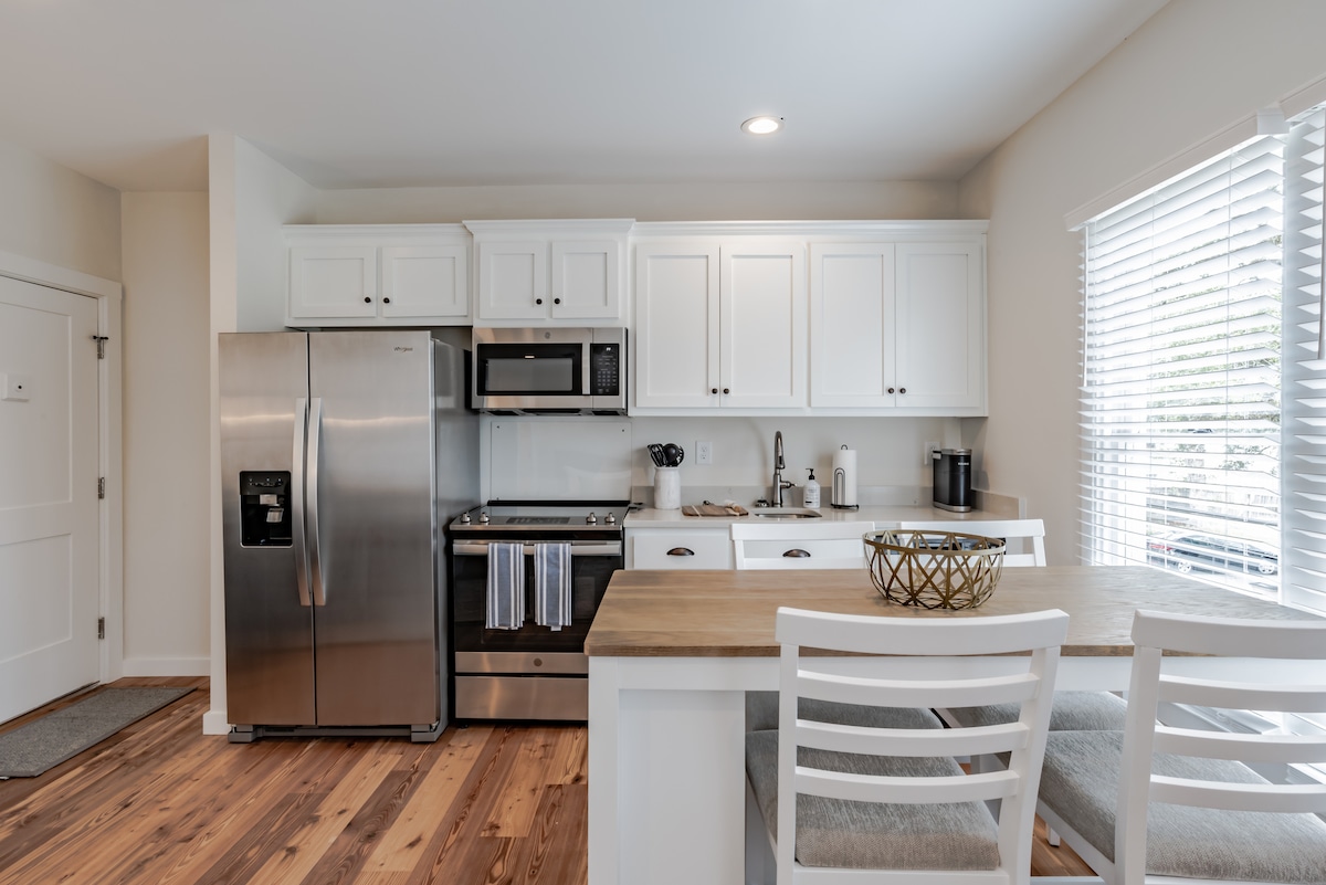 Our one bedroom with a loft is 1400 sq ft directly across from Greers grocery store, above Towne & Beech, and a stones throw from Page & Palette. There are so many shops & restaurants within walking distance of the condo and I love sitting on the balcony taking in the sites. The master bedroom has a king bed with a tempur pedic mattress as well as a master bath with tub and separate shower. The loft area has a queen bed with a tempur pedic mattress as well as a twin daybed.