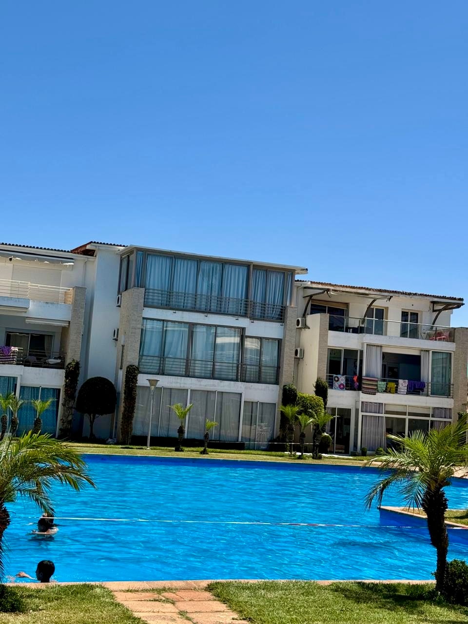 Profitez en famille de ce logement front de mer sécurisé 24/24H.offrons une vue imprenable,L’appartement est entièrement équipé pour vous garantir un séjour tout confort. Propose: Un salon avec TV et une salle à manger 2 chambres 2 salle de bains Une terrasse meublée avec une balançoire. Une cuisine équipée de tous les ustensiles dont vous avez besoin pour cuisiner vos repas. Situé dans une résidence avec plusieurs piscines avec un accès direct à la mer. Salle de sport. Salle de kids.