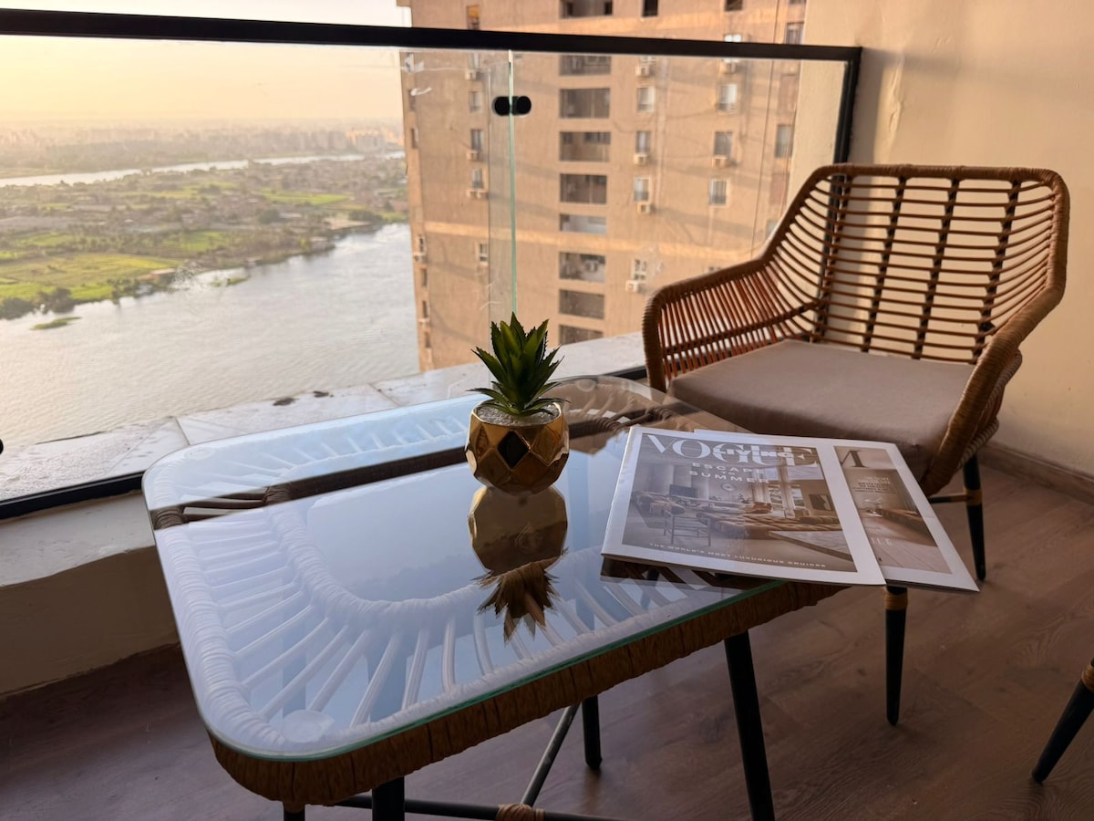 Lux 33: Nile & Pyramids View Residence from the 33rd Floor Perfect for Couples Experience Cairo from above at Lux 33, a newly renovated 3-bedroom, 2-bathroom apartment perched on the 33rd floor. This luxurious home features elegant finishes and a private balcony with breathtaking views of the Nile River and the Pyramids of Giza. Watch the golden sunset behind the pyramids all from a height few can match. With four comfortable beds, Lux 33 offers the perfect blend of comfort.