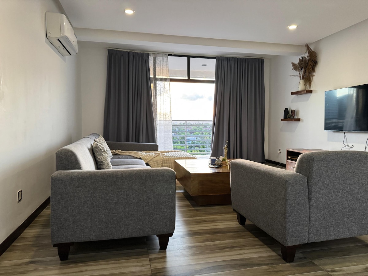 Welcome to our charming one-bedroom apartment, perfect for your next getaway! With the ENTIRE PLACE TO YOURSELF, Enjoy a bright, spacious living room and a fully-equipped kitchen that will make you feel right at home. Step out onto the private balcony to relax and take in the fresh air, and a standby generator. Conveniently located and beautifully furnished, our apartment offers everything you need for a comfortable stay. Book now and experience the perfect blend of comfort and convenience!