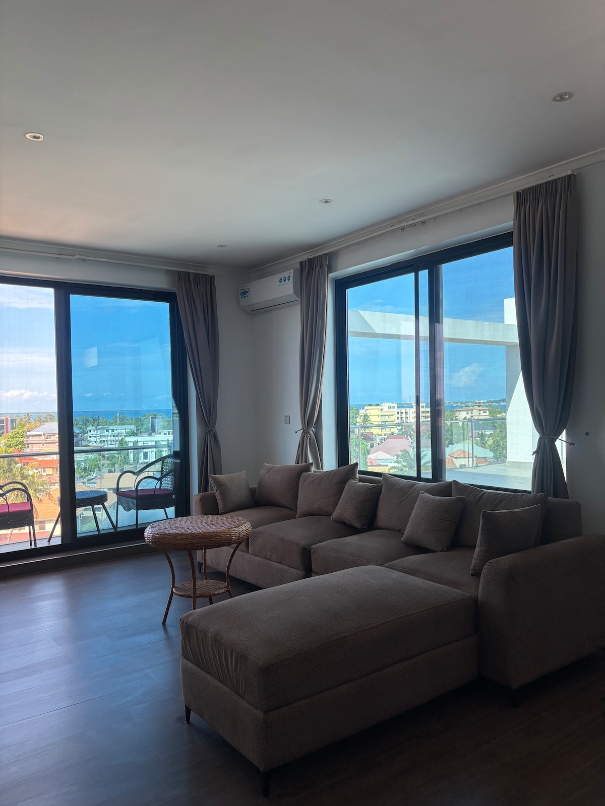 Perched high above the city, blending modern elegance with cozy charm. Designed for those who love spacious living and breathtaking skyline views, sunsets, and twinkling city lights. The mix of modern and warm rustic accents, with vibrant touches and decor that add a pop of warmth and energy, makes the open-plan living area and equipped kitchen perfect for unwinding in style. Close to Palm Village, close to the beach, Mikocheni Plaza and Shoppers Plaza, about 15 minutes to the city centre.