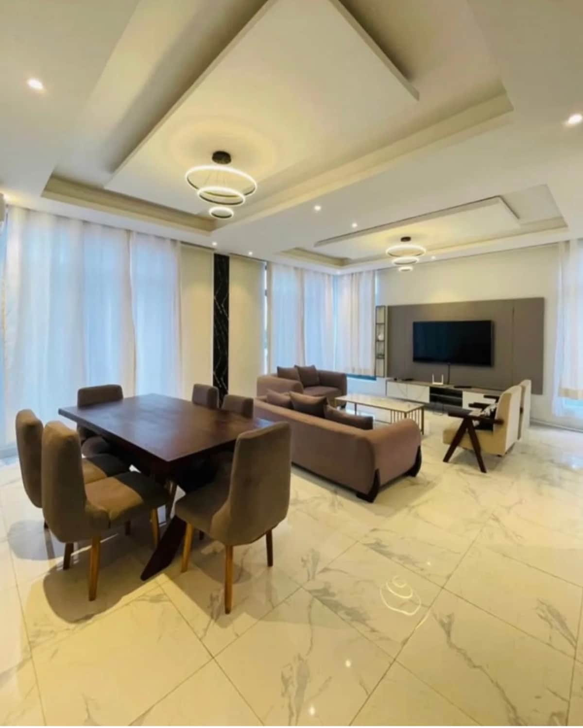 Welcome to a luxury living: a sprawling, family-friendly apartment nestled in the heart of the city, where convenience meets extravagance at every turn. The spacious living area boasts large windows, flooding the space with natural light and offering breathtaking views. The open concept design seamlessly connects the living, dining, and kitchen areas, creating an inviting atmosphere.