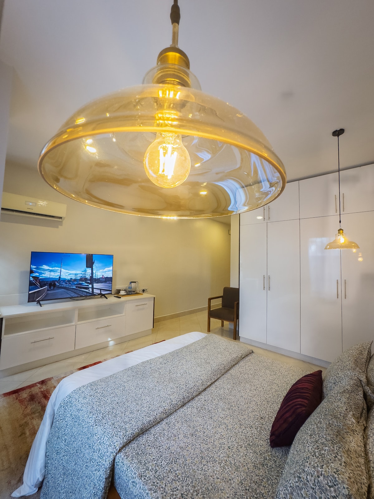 Welcome to our luxurious 15TH-floor studio apartment. Enjoy a 65" Smart Curved TV, fast WIFI, cleaning services, and a fully equipped kitchen. Pizza Hut and a supermarket are just 5 minutes away. Indulge in the luxurious bathroom with all amenities . Take in stunning views from floor-to-ceiling windows. Experience ultimate luxury and convenience in this exceptional studio apartment As you gaze out from the floor-to-ceiling windows, you'll be treated to awe-inspiring views from the 15TH floor