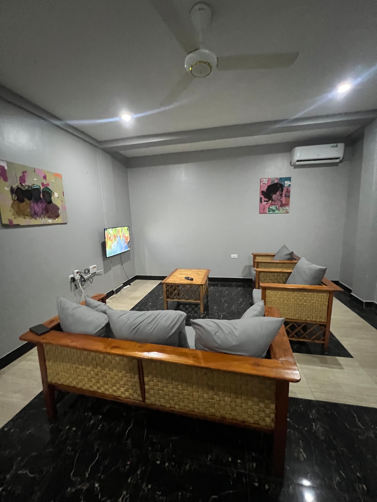 Escape to The Greenhouse, where warmth and elegance meet. Our retreat is designed with super comfy beds, soft ambient lighting, and modern decor that soothes and welcomes. Features: - Enjoy shows and movies on a 75” TV with free Netflix, Amazon Prime, and YouTube. - Stay connected with fast-speed Wi-Fi and an excellent sound system. - Explore easily with the city center, Zanzibar Ferry, and vibrant nightlife just moments away. Our mission: To ensure your stay is nothing short of exceptional