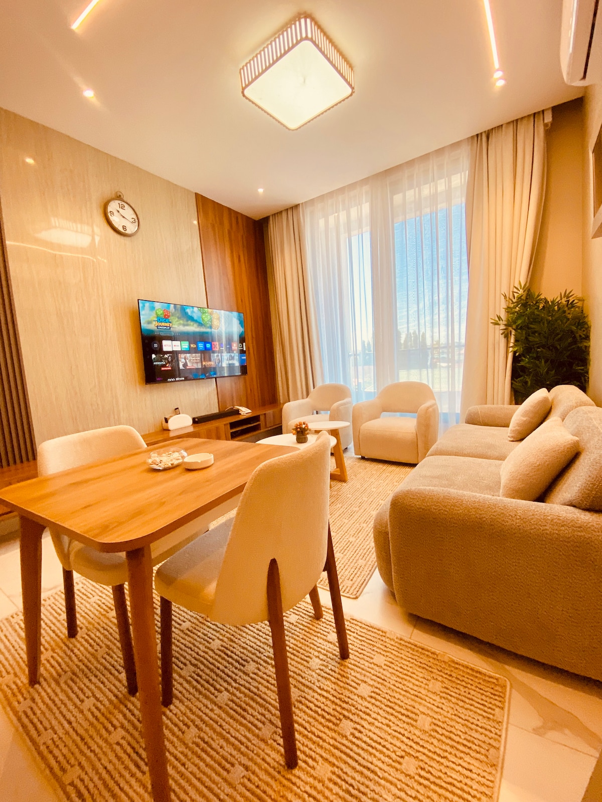 Olive Grove 🫒 is a cozy 1-bedroom apartment in the serene neighborhood of Mikocheni B. Styled with olive green and white tones, it’s perfect for solo travelers or couples. Located on the same floor as the Black Studio 🖤, it’s ideal for groups booking both. Enjoy high-speed WiFi, paid Netflix, a private terrace, washing machine, and 24/7 on-site housekeeper support. Water and electricity are fully covered. Close to malls, gyms, restaurants, hospitals, and the beach.