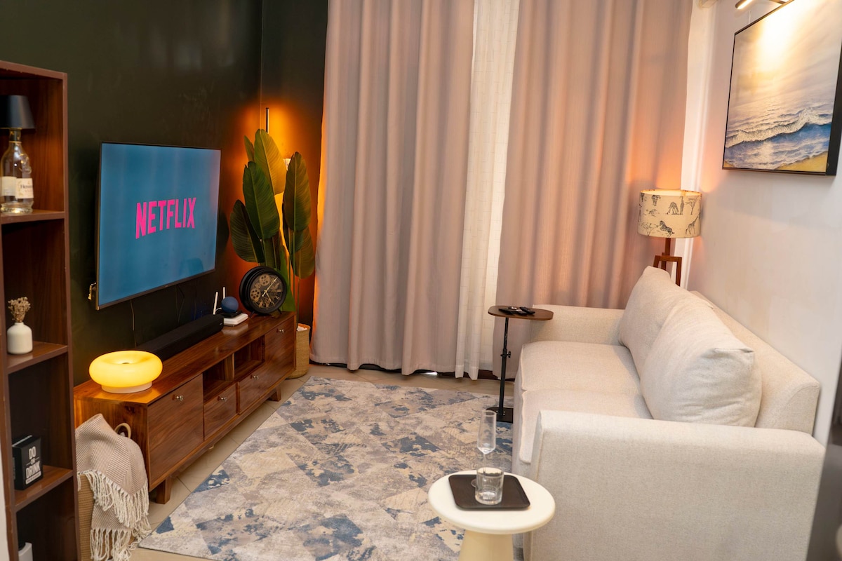 Whether visiting Dar es Salaam for business or leisure, our apartment offers a sophisticated city escape where comfort, privacy, and convenience meet. This elegant 1-bedroom residence is set in a prime, serene neighborhood near Masaki, Msasani, CBD, and Upanga—just 1 minute from Dar Village Mall and Kuku Kuku Bar & Restaurant. Enjoy a cozy bed, private bathroom, 32” Smart TV, sleek workstation, modern lighting, and ample storage—perfect for relaxing, working, or exploring the city with ease.