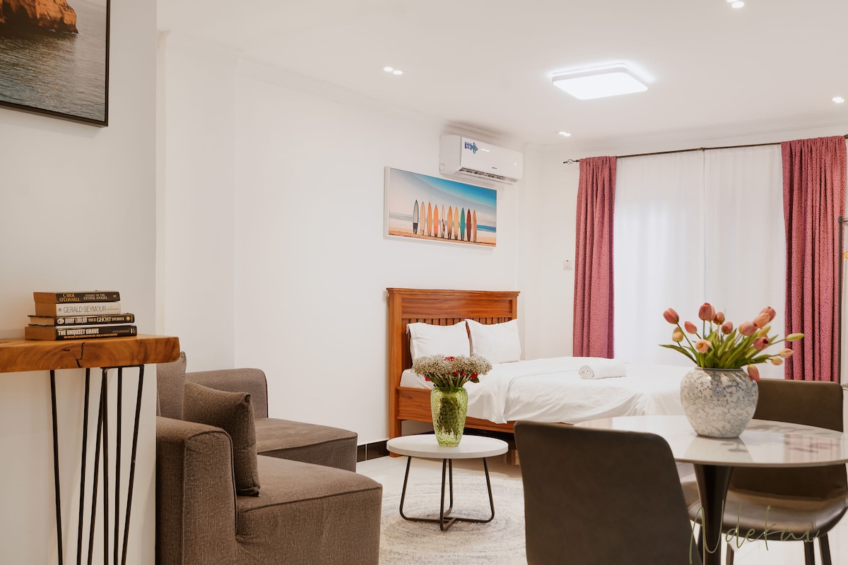 Minzi Homes is a cozy, fully equipped apartment with a private entrance, balcony, kitchen, bathroom, and a peaceful garden. Located in secure Mikocheni Kwa Nyerere—former home of Tanzania’s first president—it offers free parking, Netflix, and stunning sunset views. Surrounded by mango trees and playful monkeys, it's one of the greenest spots in the city—just minutes from beaches, malls, and the city center.