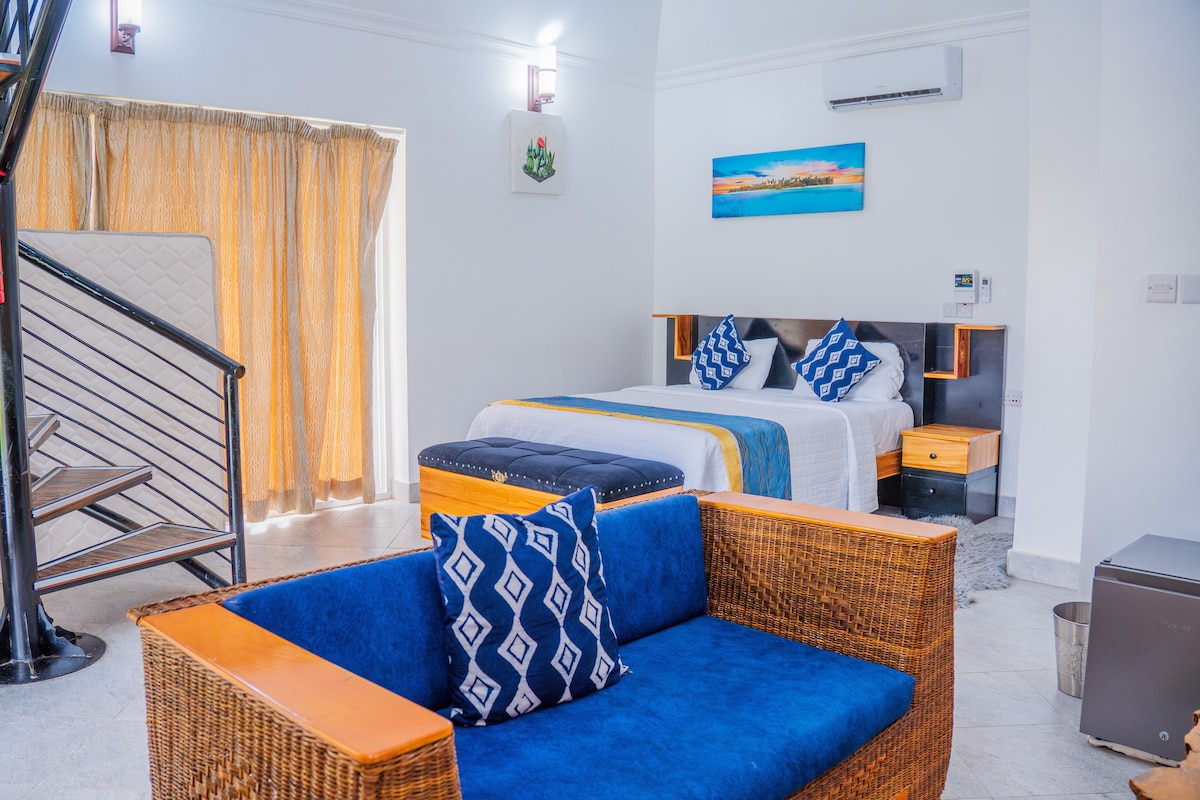 Located in Mbezi beach makes this the perfect place for anyone looking for serenity and security while being in close proximity to all of the popular establishments in the area. The fenced apartment has a smart TV for your entertainment, high-speed Wi-Fi, a bedroom with a queen size bed, ceiling fan and air conditioner. This home is perfect for backpackers, couples or anyone looking for something simple, serene and comfortable near the beach,