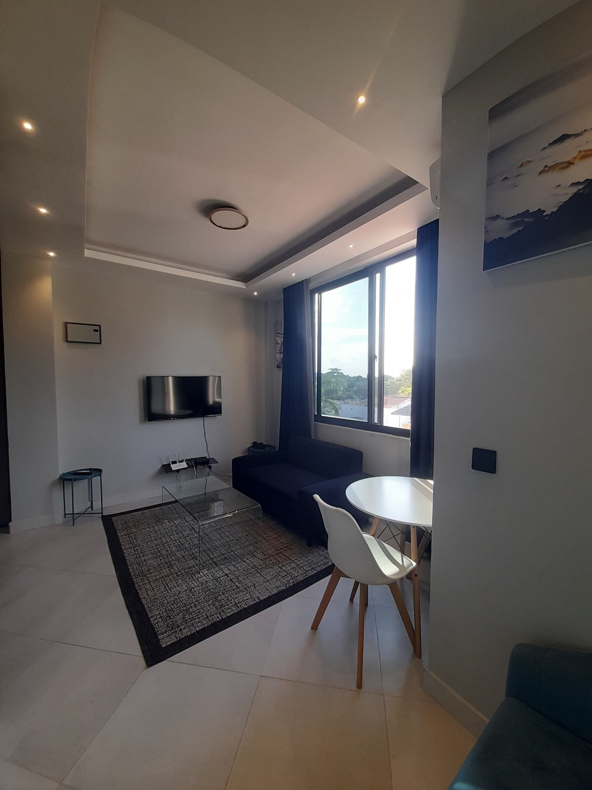 Perched high above the city, blending modern elegance with cozy charm. Designed for those who love spacious living and breathtaking skyline views, sunsets, and twinkling city lights. The mix of modern and warm rustic accents, with vibrant touches and decor that add a pop of warmth and energy, makes the open-plan living area and equipped kitchen perfect for unwinding in style. Close to Palm Village, close to the beach, Mikocheni Plaza and Shoppers Plaza, about 15 minutes to the city centre.