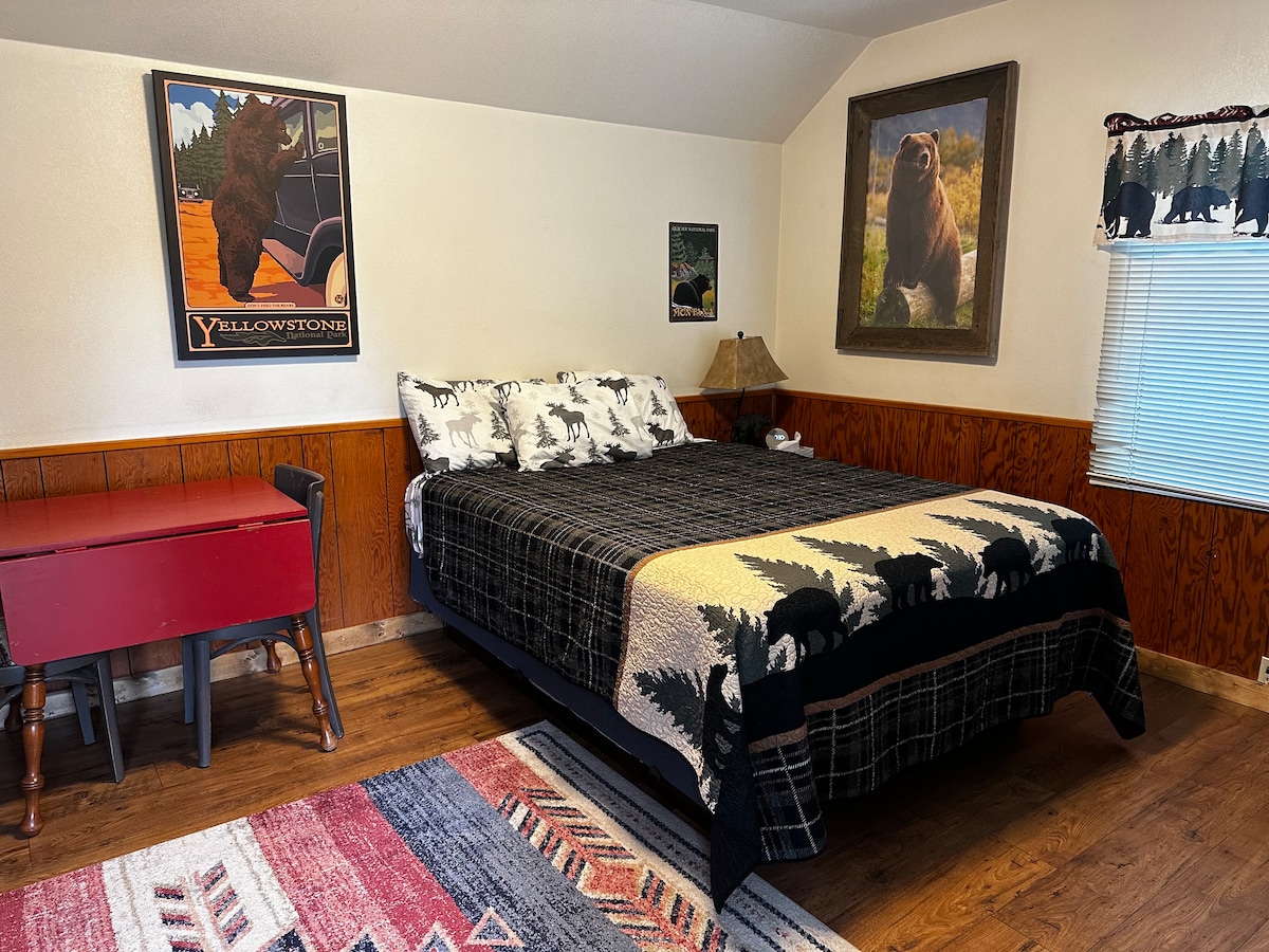 This charming, cozy cabin is the perfect retreat for a couple or honeymooners. Inside, you'll find a mini kitchen equipped with a full-size refrigerator, a two-burner hot plate, a small microwave, a toaster oven, and a coffeemaker. For restful sleep, there’s a queen bed and a sofabed for additional sleeping space. Sip your coffee on the deck while taking in stunning mountain views, or unwind by your private firepit under Montana’s vast, starry sky with your beverage of choice.