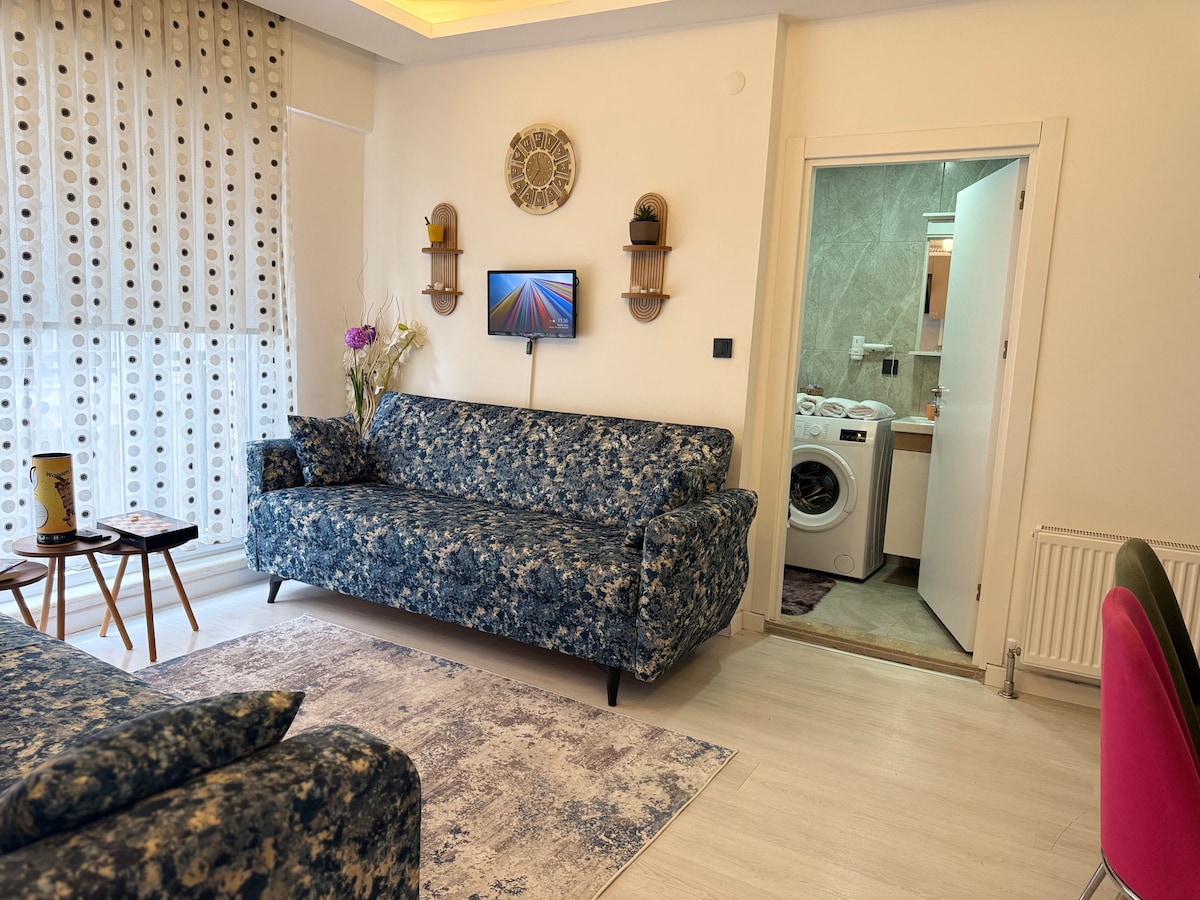 Modern ve yeni tasarımlı dairemiz sahile 2 dakika; şehir merkezine, müzelere ve gezilecek yerlere 5 dakika yürüme mesafesindedir. Yeni binamız konumu itibariyle size hem huzurlu hem de keyifli bir konaklama sunuyor. Ev Konforu & Ayrıcalıklar: -Wi-Fi ve Akıllı ev sistemi -Klima (Soğutma) ve Oda termostatı ısıtma sistemi -Google Home ile aydınlatma ve cihaz kontrolleri -Şık ve lüks tasarım detaylarıyla evinizdeki rahatlığı yaşayın -Alışveriş ve tarihi noktalara yakın merkezi konum