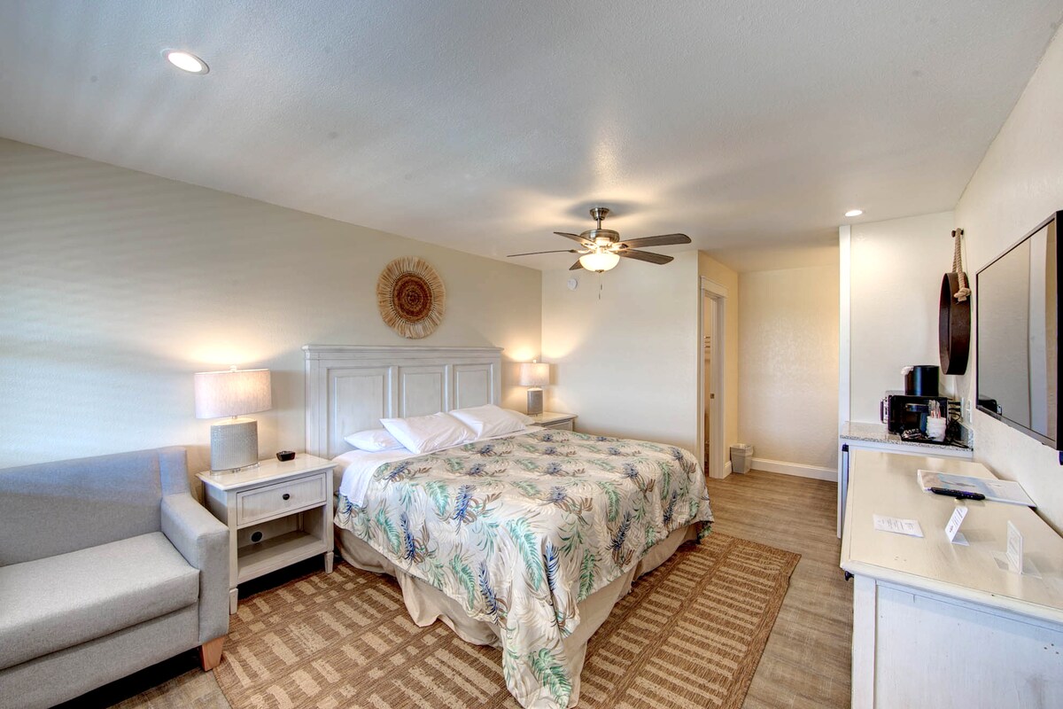 标准双人床高效房源,带小厨房,距离海滩仅几步之遥!