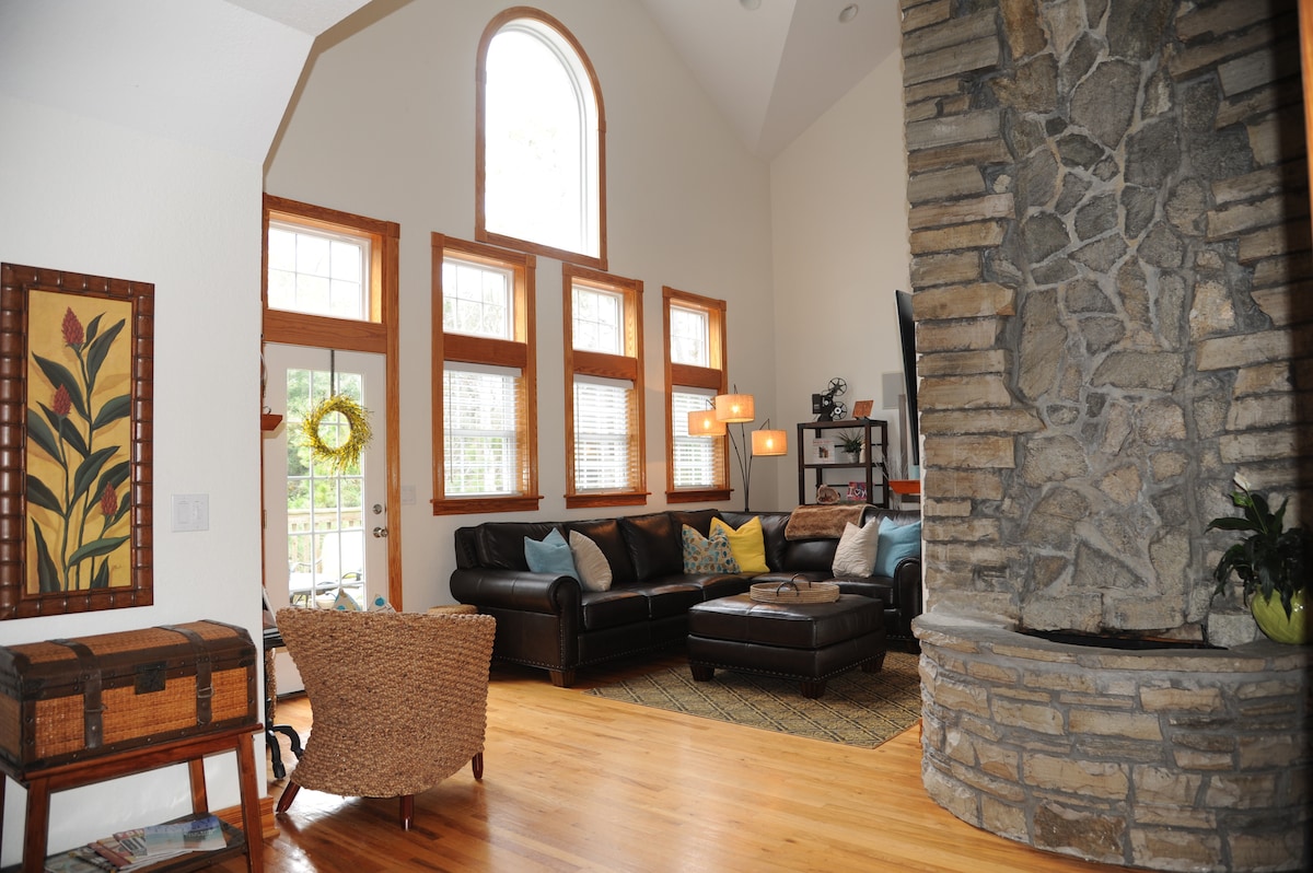 Enjoy a memorable retreat at the OBX Waterfall B&B! The “Crow’s Nest North” is a king ensuite with full bath, fireplace & secluded balcony to ensure guests a retreat from gathering spaces. Mini fridge, Keurig, ice bucket, mugs & wine glasses in suite. Five minute walk to private beach. (Additional rooms under profile) Popular attractions: Duck Waterfront shops Cape Hatteras Lighthouse, Jockey's Ridge State Park, Wright Brother's Memorial, Currituck Lighthouse & The Lost Colony Outdoor drama