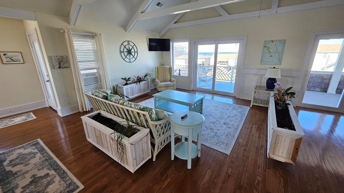 Make memories in our newly renovated 4-bedroom 3 bathroom house perfect for your escape to the beach. Semi-oceanfront/sound views inside & out! Designed to sleep 12, there's plenty of room for everyone! All 3 FULL bathrooms are equipped with shampoo/conditioner, body wash, soap, a hairdryer, towels (including makeup towel) to ensure everyone stays refreshed. Beach gear, WiFi, community pool and washer/dryer are just a few of the MANY amenities provided. The Chubby Mermaid is family/kid-friendly.