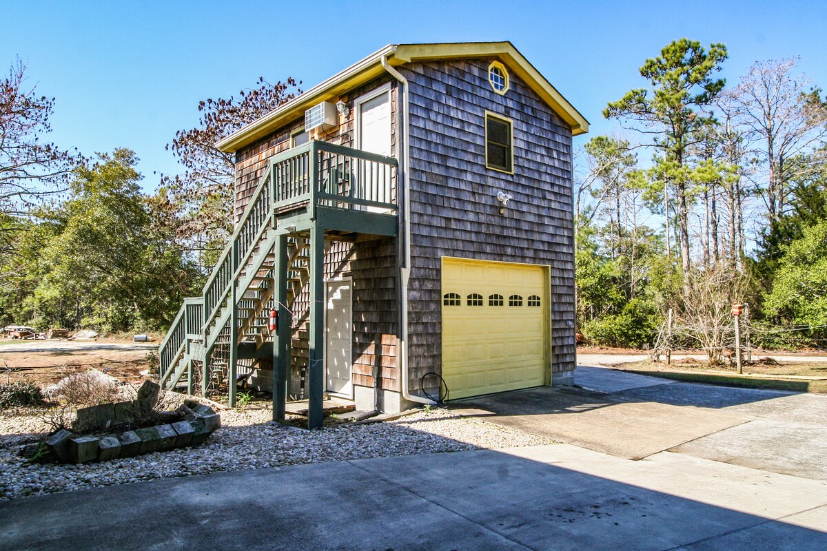 This 1 bedroom stand alone apt is incredible, its tucked into a unique space thats totally private yet close to all the northern Outer Banks has to offer. It has two large decks and 1 has views of the ocean. Follow the grass driveway to the street and walk 100ft to the ocean. You will not find a more well thought out space for 2 people than this spot. *There may be some construction noise during the day next door at the main house for the last two weeks of June and first week of July.