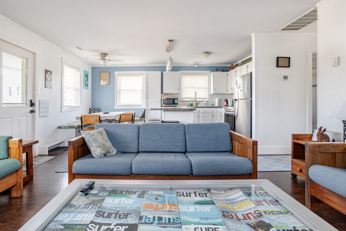 Professionally hosted by OBX Sharp Stays: Welcome to the Heart of the OBX, Avalon Beach! Our private cottage is located only 2 blocks across the main road from Avalon Fishing Pier! Enjoy a very short 2 minute walk to the locals favorite Front Porch Cafe for coffee&pastries. Very close to free public beach parking! Bike ride to the sound side end of the road and enjoy the neighborhoods private sound front lot for fishing, picnics or watch a beautiful sunset! *DISCOUNTED BEACH PHOTO SESSION*