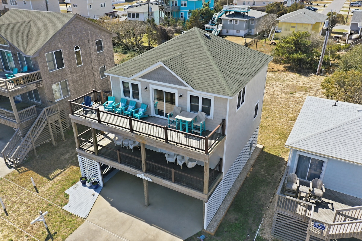 Hi! This is Next To Sea -- a gorgeous, oceanfront Outerbanks beach house with spacious views of the ocean and sound. Designed with guests’ optimum comfort in mind and loaded up on “extras.” Bask in relaxation in this 4-bedroom, 4-bathroom home featuring 3 ocean-facing, en-suite bedrooms, a bunkroom with private deck, and 2 floors of decks. Plus, we've stocked up on top-level amenities, like Vitamix, All Clad, Lenox, Bose, Nikon binoculars, kayaks, toys and more.