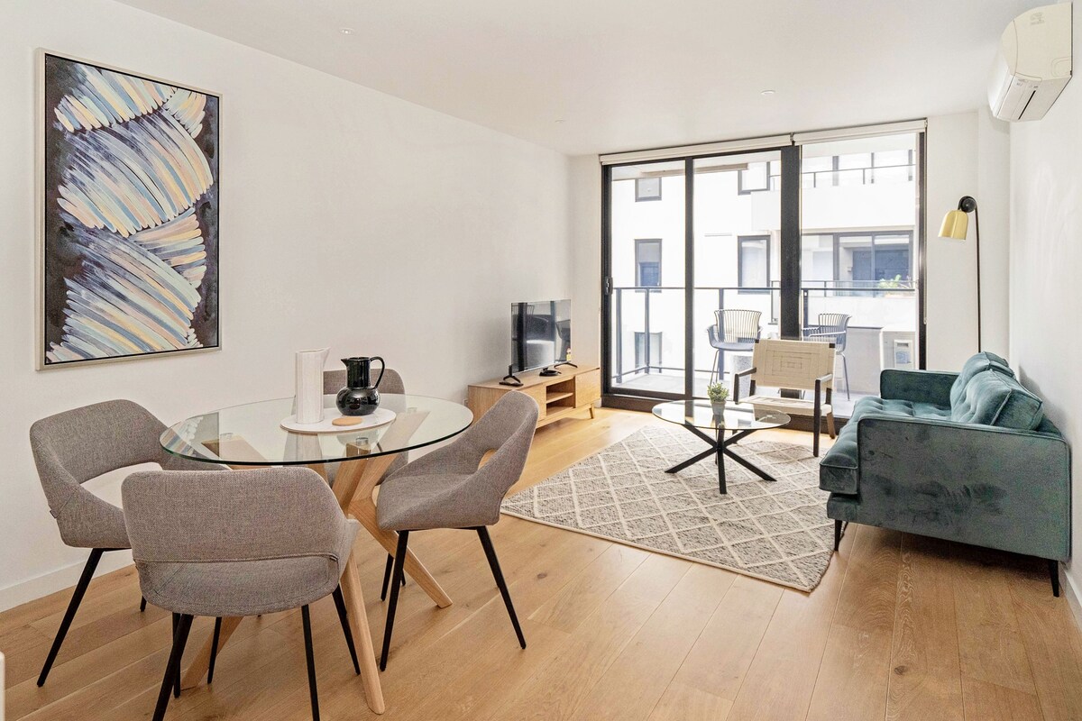 Welcome to our stylish apartment in the heart of Brunswick East! Enjoy a thoughtfully designed space with a cozy living room, dining nook, and a fully equipped kitchen and balcony. A comfy queen bed and a single bed with fresh linen & soft lighting. Relax on the plush sofa, browse through magazines, or enjoy a quiet night in with a movie. Right outside your door, Brunswick East is buzzing with cafés, restaurants, and boutique shops. Trams at your doorstep—Melbourne CBD in just 5 mins.