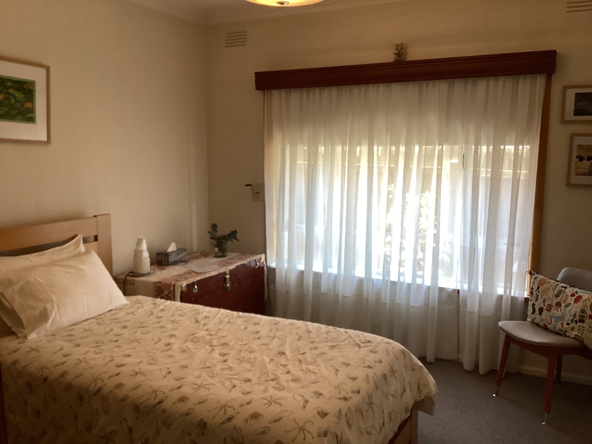 Welcome to my bright and comfy, fully equipped first floor flat in Alphington, approx 7km from the CBD. Nestled at the end of a tree-lined street with lots of natural light and a short walk to Fairfield Train Station (17mins train ride to the city, 14mins to the MCG) and Fairfield Village filled with restaurants, cafes and shops of all kinds. Street parking and bike paths are directly outside. The Yarra River, Fairfield Boathouse and Darebin Parklands are all close by.