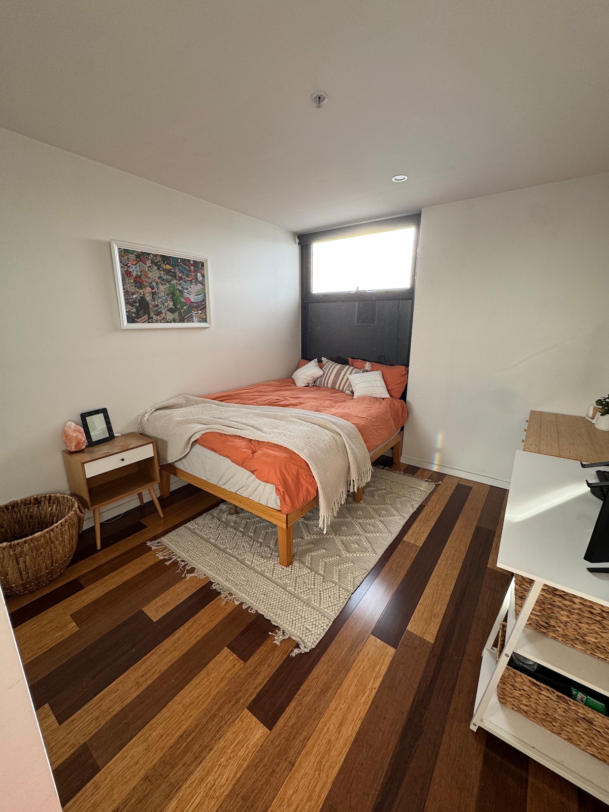 Forget your worries in this spacious and serene space. This fully renovated granny flat located in our rear garden offers private side entrance with modern interior, brand new bathroom and a kitchenette. Located in Preston, 15 minutes walk to the famous Preston Market, supermarkets and train station. 5 min walk to 86 tram. The kitchenette has induction hob, coffee machine, fridge, and Microwave. Wifi included with a working desk space as well as an armchair with 50 inch TV.