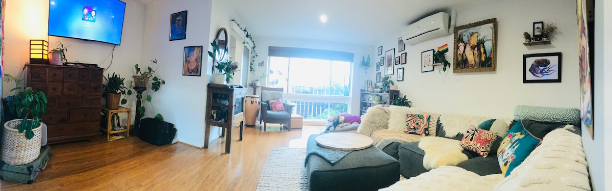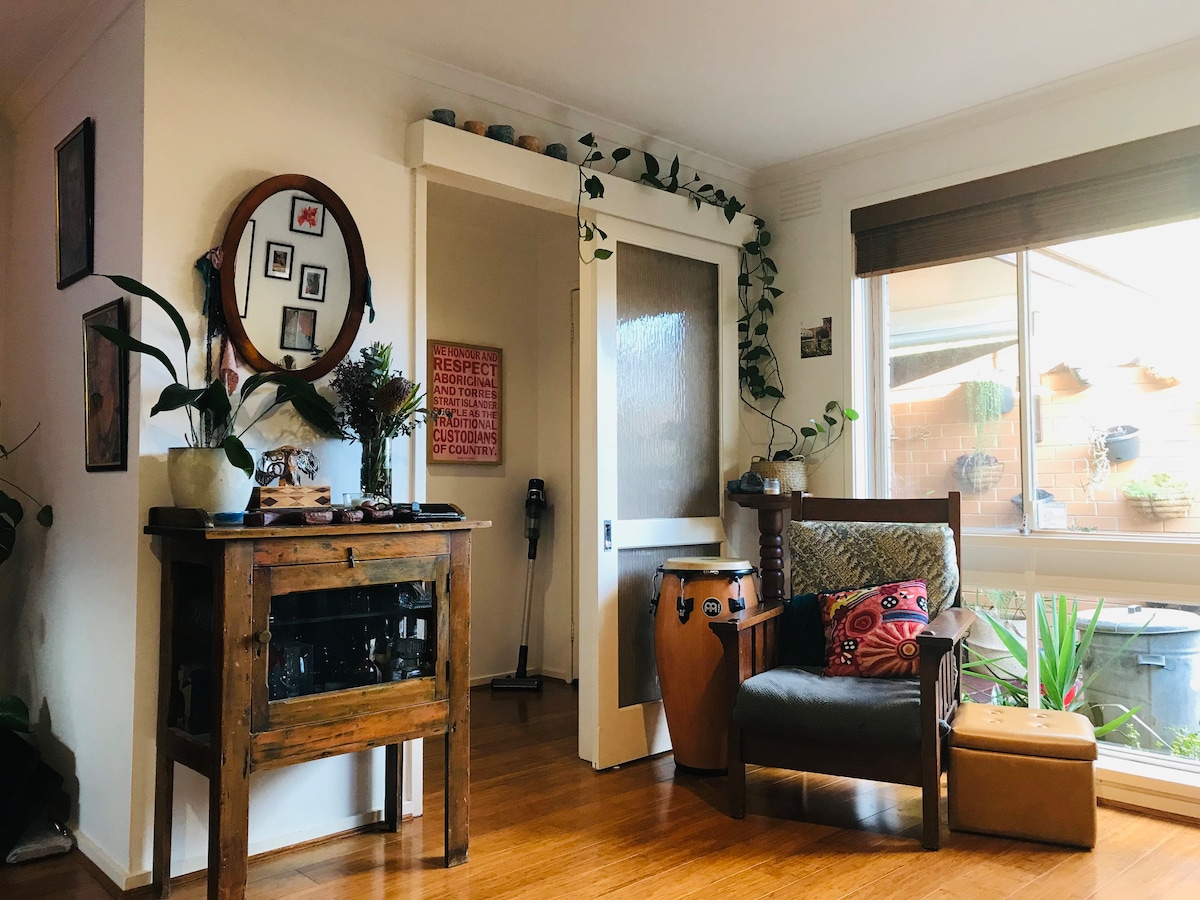 Relax & hang out in my fun little apartment. Super close to Preston market & train station, it’s a great place to base yourself for a north side trip. The place would ideally suit a couple however there is the option of easily folding out the sofa in the living room if you choose. Smart projector with all the apps. Washing machine & dryer available for use. Please consider that your pet will not be able to freely come & go into the courtyard due to the set up.
