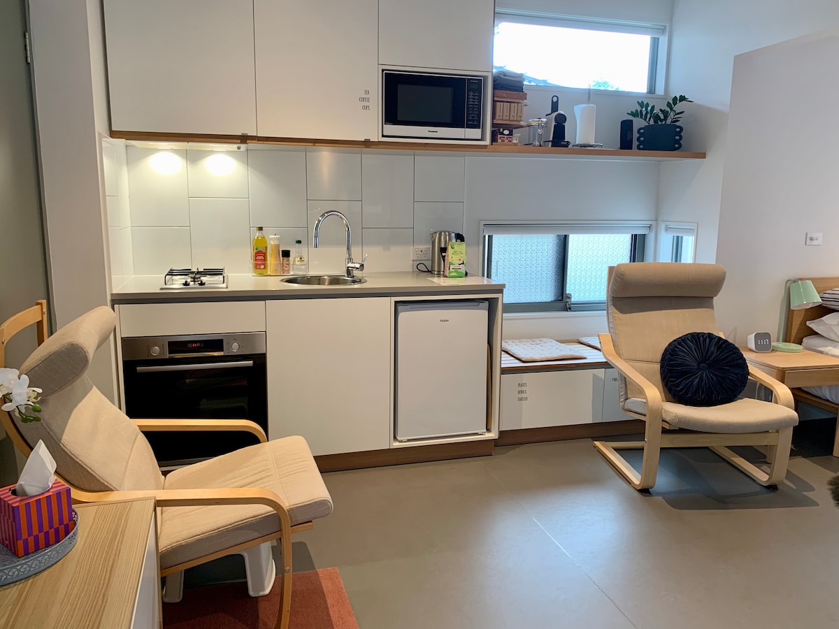Private Studio Bungalow Stylish guest studio bungalow with a delightful garden outlook. Private entrance. A relaxing living area with TV with Netflix, WiFi and small kitchenette (water accessed via bathroom sink.) Comfortable double bed and small second room with an additional living area and single sofa bed for a second bedroom. Located in the heart of Westgarth 1 minute walking distance from public transport and to the wonderful Westgarth Cinema, cafes and nightlife. LGBTQ- friendly.