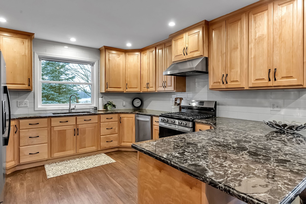Golf Course View in a Small Town Feel This beautiful Cape Cod style home is located conveniently between Rochester, NY and Buffalo, NY, just off from NYS I-90 Thruway. This newly remodeled home with a lot of updates inside out and amenities. This home is located a few steps away from Terry Hills Golf Course (the backyard is the golf course), Batavia Country Club, and a beauty salon.