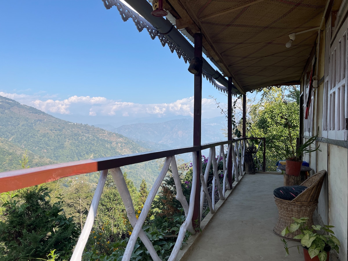 Unwind and pamper yourself this holiday in our majestically and beautifully designed A frame attic.Witness the majestic and picturesque landscapes of the mountains, himalayan range,singalila national reserve park and the almighty Kanchenjunja from the property . The property is unique in its shape,structure and architect pls note : the property is 1.5kms ahead of the main darjeeling center and about 150mts walking distance from the main motorable road