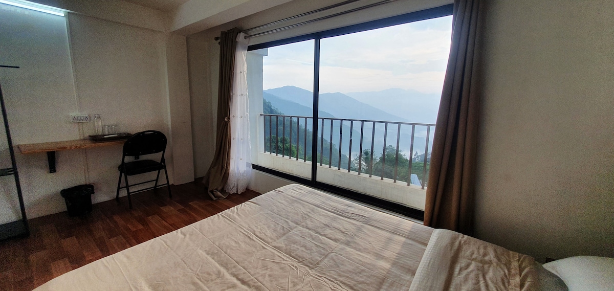 A 1000 sq. ft loft suite with a private terrace, a fully equipped kitchen and an attached bathroom. The property has 360 degrees view of Kalimpong town with 'Delo' the highest hill towards the north, Durpin Dara to the south and Relli river valley the east. The property overlooks the eastern Himalayan range.