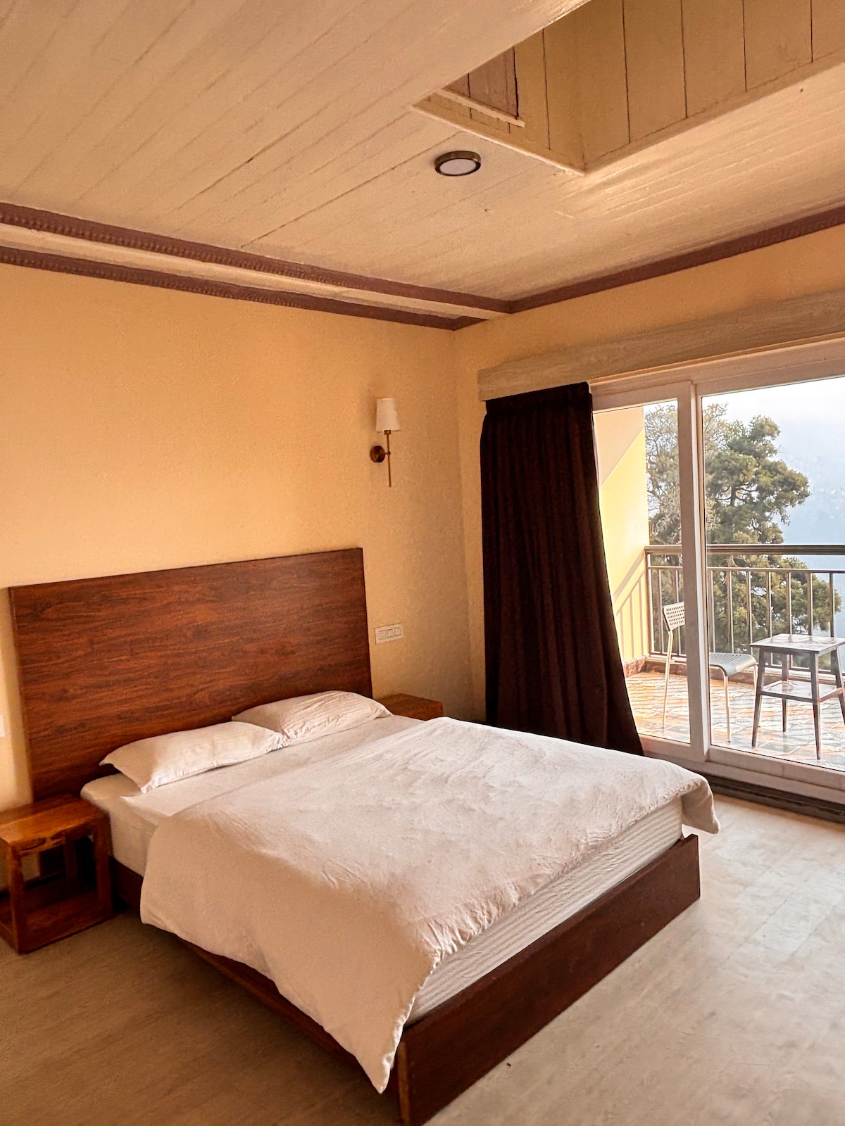 Our remote location offers you a slice of rural life, slow living and clean mountain air. It is a space for rest and unhurried time in nature — to slow down, breathe and leave feeling lighter. We are not a sight-seeing base 😀 The Ikigai cabin is ideal if you desire such out-of-the-way places, with luxurious amenities. The mattress is premium, the linen is soft, and the washroom will surprise you. A large balcony offers a being-among-the treetops feel. We serve both veg and non-veg meals.