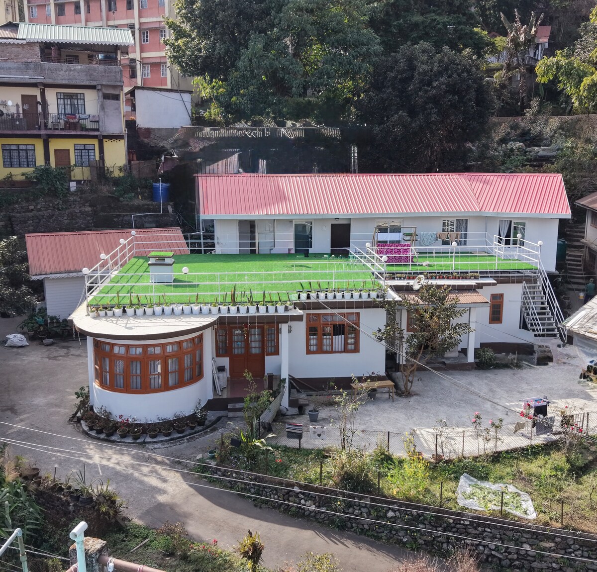 Unity Heights Homestay – Darjeeling Type:4‑BHK apartment, 2 floors- Sleeping:5 beds (mix of rooms)- Common areas:Shared balcony with panoramic mountain views, 2 common washrooms-Location: Road‑side, near Gorkha Stadium, Lebong Race Course, and taxi stand (10‑15 min to Darjeeling town)- *Amenities nearby:* Small market, ATMs (Bank of India, SBI, Axis), taxi service, parking space- *Ideal for:* Families seeking spacious,well‑connected accommodation with beautiful greenery and easy access to town.